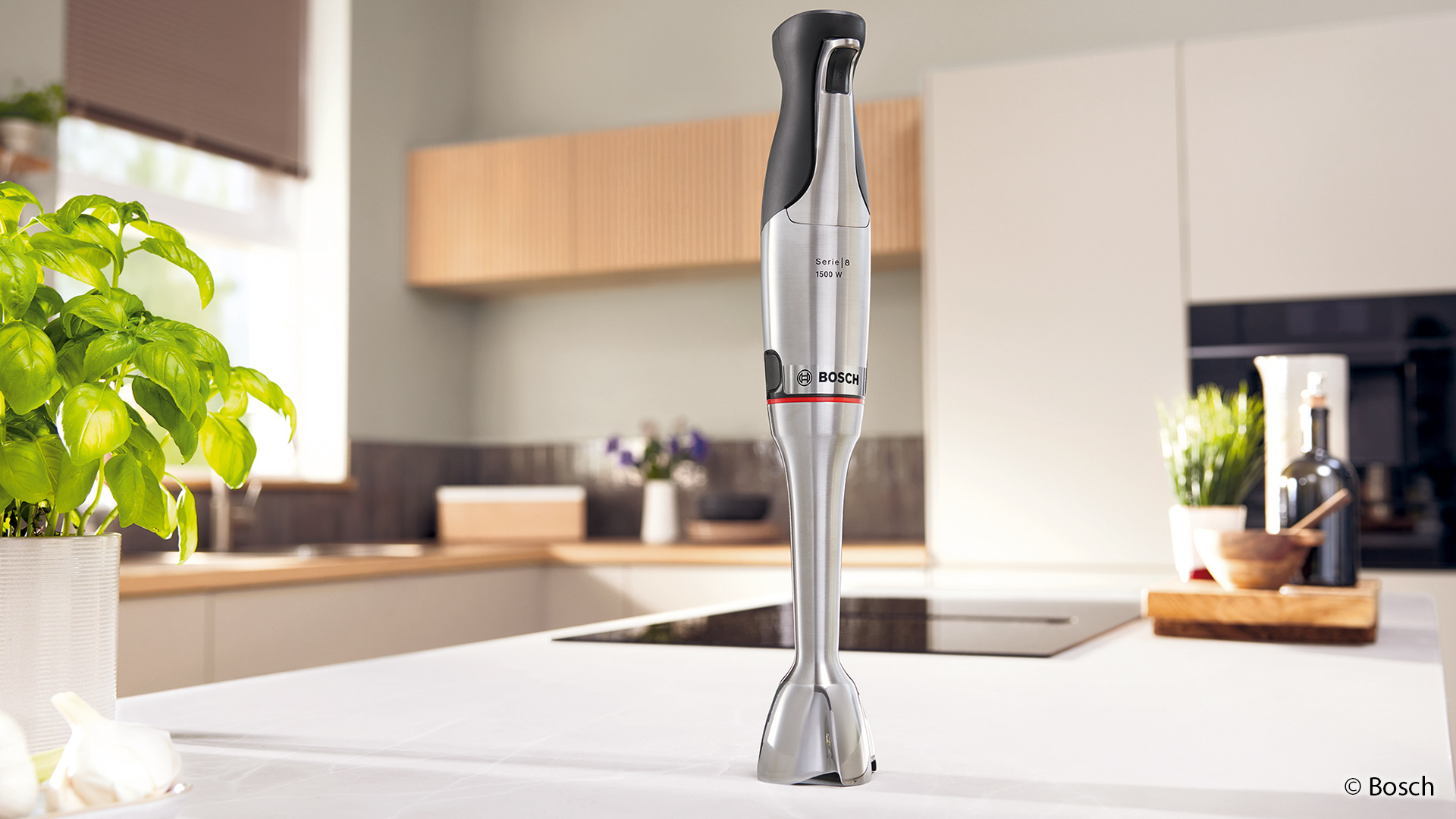 Bosch erweitert sein Küchengeräte-Portfolio um den Stabmixer ErgoMaster Serie 8. Nach Herstellerangaben handelt es sich um den leistungsstärksten in Europa produzierten Stabmixer des Unternehmens. Das Modell ist mit einem luftgekühlten Motor ausgestattet, der eine Leistung von 1.500 Watt erreicht und auch bei der Verarbeitung fester oder faseriger Zutaten konstante Ergebnisse liefern soll.