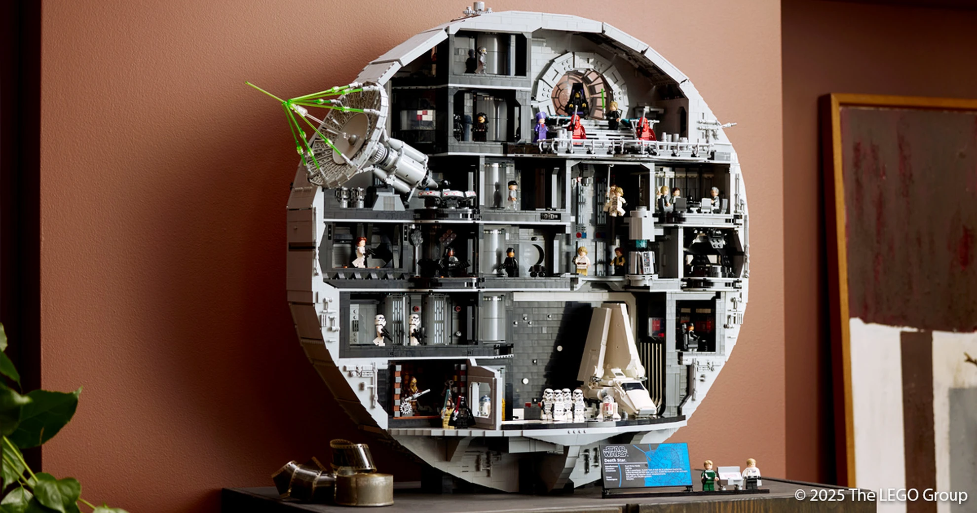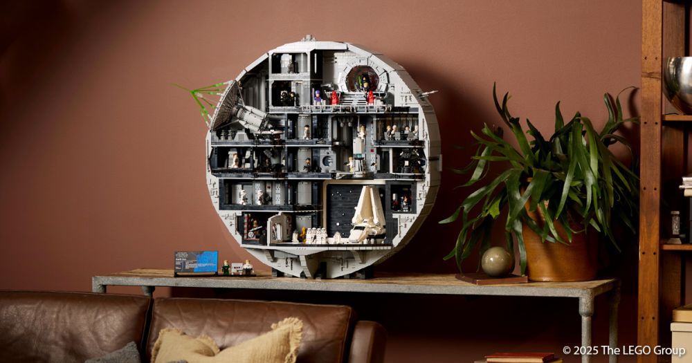 Wer also schon immer eine imperiale Kampfstation in Reichweite seiner Fernbedienung parken wollte und rund 1000 Euro berappen will: jetzt wird es ernst. Was dieses Modell vom klassischen „Riesenball“ unterscheidet, ist sein bewusst gewählter Fokus. Statt einer geschlossenen Kugel setzt LEGO auf eine gewaltige Querschnittsscheibe, die einseitig offen ist und wie ein liebevoll kuratierter Schaukästen-Tausendsassa wirkt.