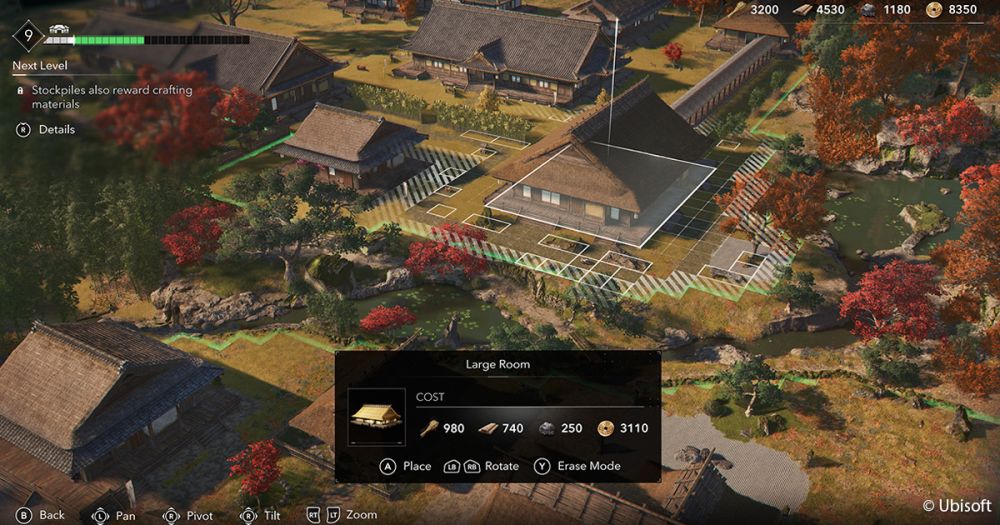 Die Späher wiederum sind wichtig, um große Vorkommen an Ressourcen abzutransportieren, die wir auf unseren Diebestouren aufspüren können und zum Bau neuer Gebäude benötigen. Praktischerweise können sowohl Naoe als auch Yasuke Schätze in der Nähe durch Wände hindurch sichtbar machen.