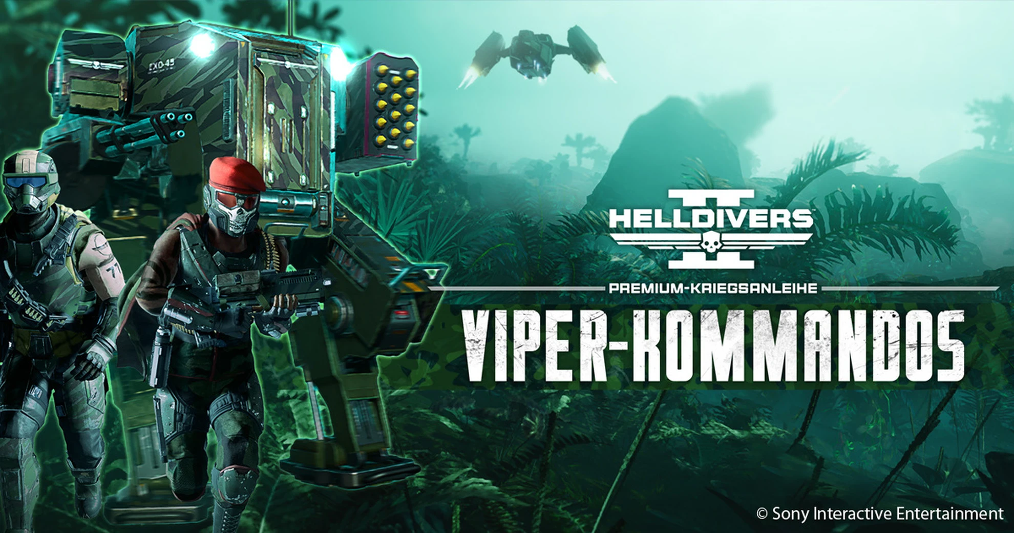 Schon bald können sich Helldivers 2-Spieler auf PlayStation 5 und PC in die Dschungelmissionen stürzen und gegen die Feinde der Demokratie kämpfen. Die neue Premium-Kriegsanleihe „Viper-Kommandos“ bietet dafür eine Reihe passender Waffen und Ausrüstungen.