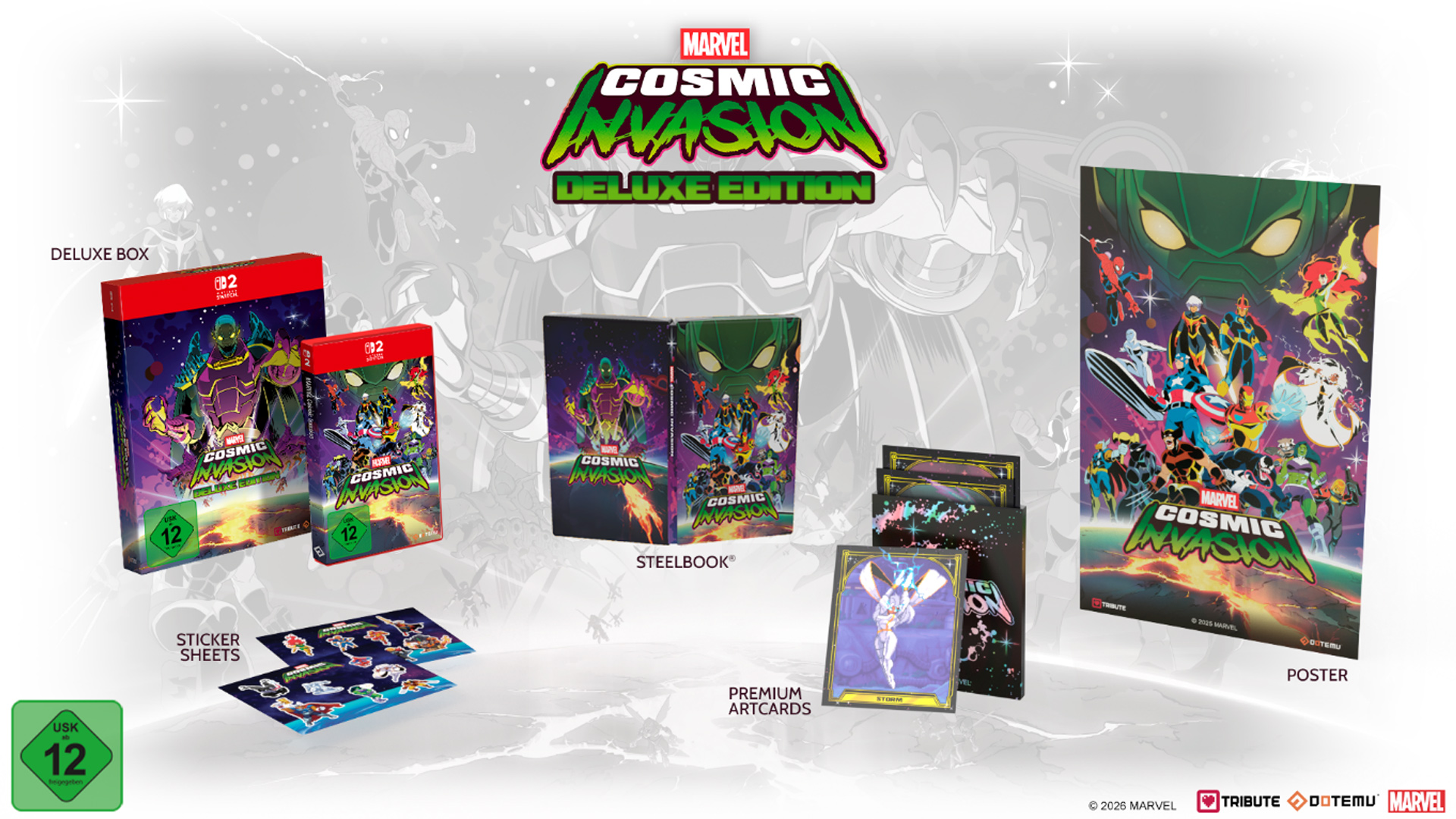 „Marvel Cosmic Invasion“ ist als Standard Edition zu einer unverbindlichen Preisempfehlung von 39,99 Euro erhältlich, während die Version für „Nintendo Switch 2“ mit 49,99 Euro angesetzt ist. Die Deluxe Edition kostet 59,99 Euro beziehungsweise 69,99 Euro für „Nintendo Switch 2“.