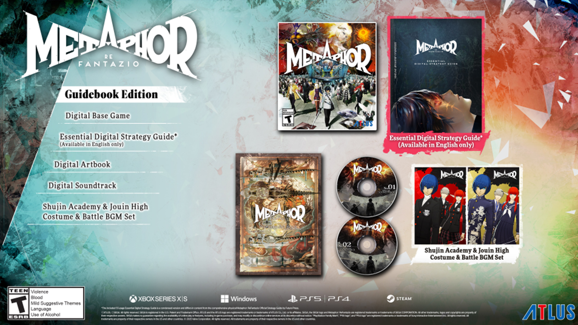 Metaphor: ReFantazio sowie die Guidebook Edition sind ab sofort für Xbox Series X|S, Windows, PlayStation 5, PlayStation 4 und PC über Steam erhältlich.