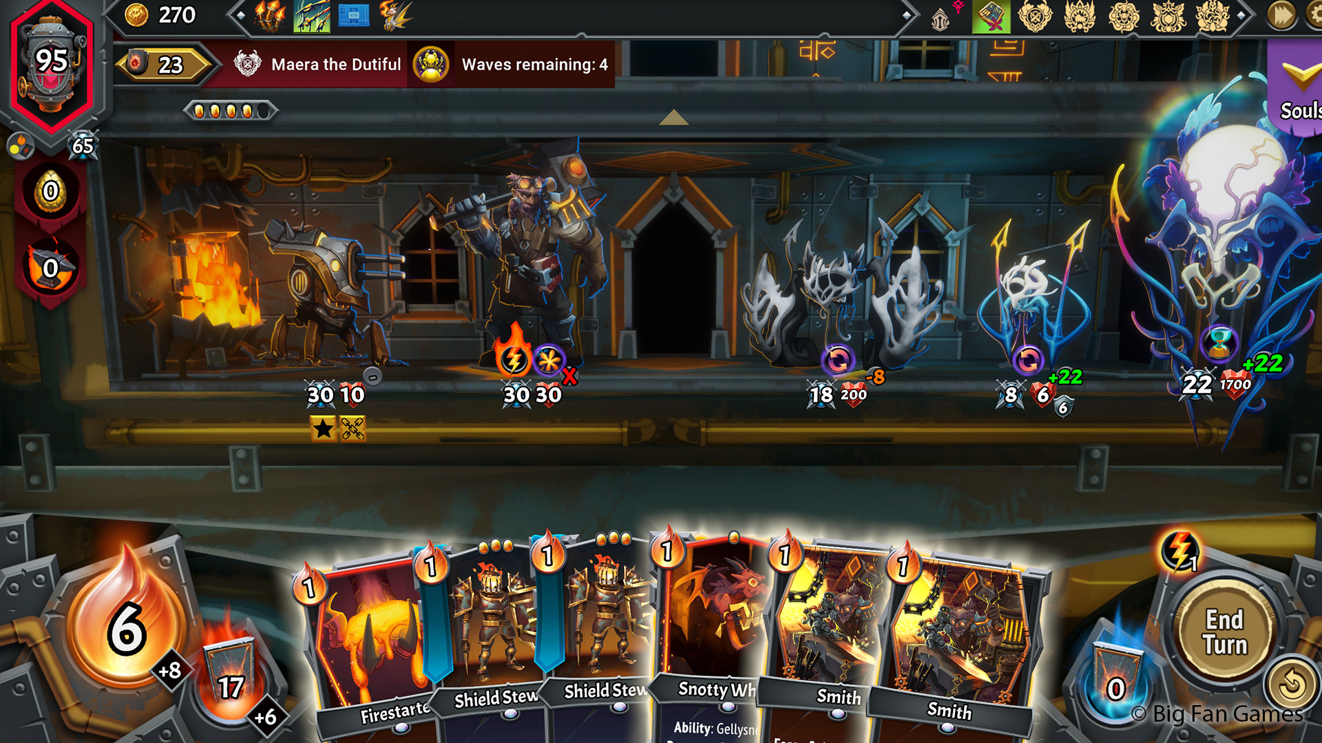 Die Bosse können in freier Reihenfolge bekämpft werden, wobei jeder Sieg zusätzliche Flüche mit sich bringt, gleichzeitig jedoch den Zugang zu stärkeren Belohnungen eröffnet. Die gewonnenen Seelen lassen sich auf Karten anwenden und verleihen diesen neue Effekte. Darüber hinaus beeinflussen freigeschaltete Seelen die Meta-Progression und eröffnen strategische Optionen, die sich deutlich vom Basisspiel unterscheiden.