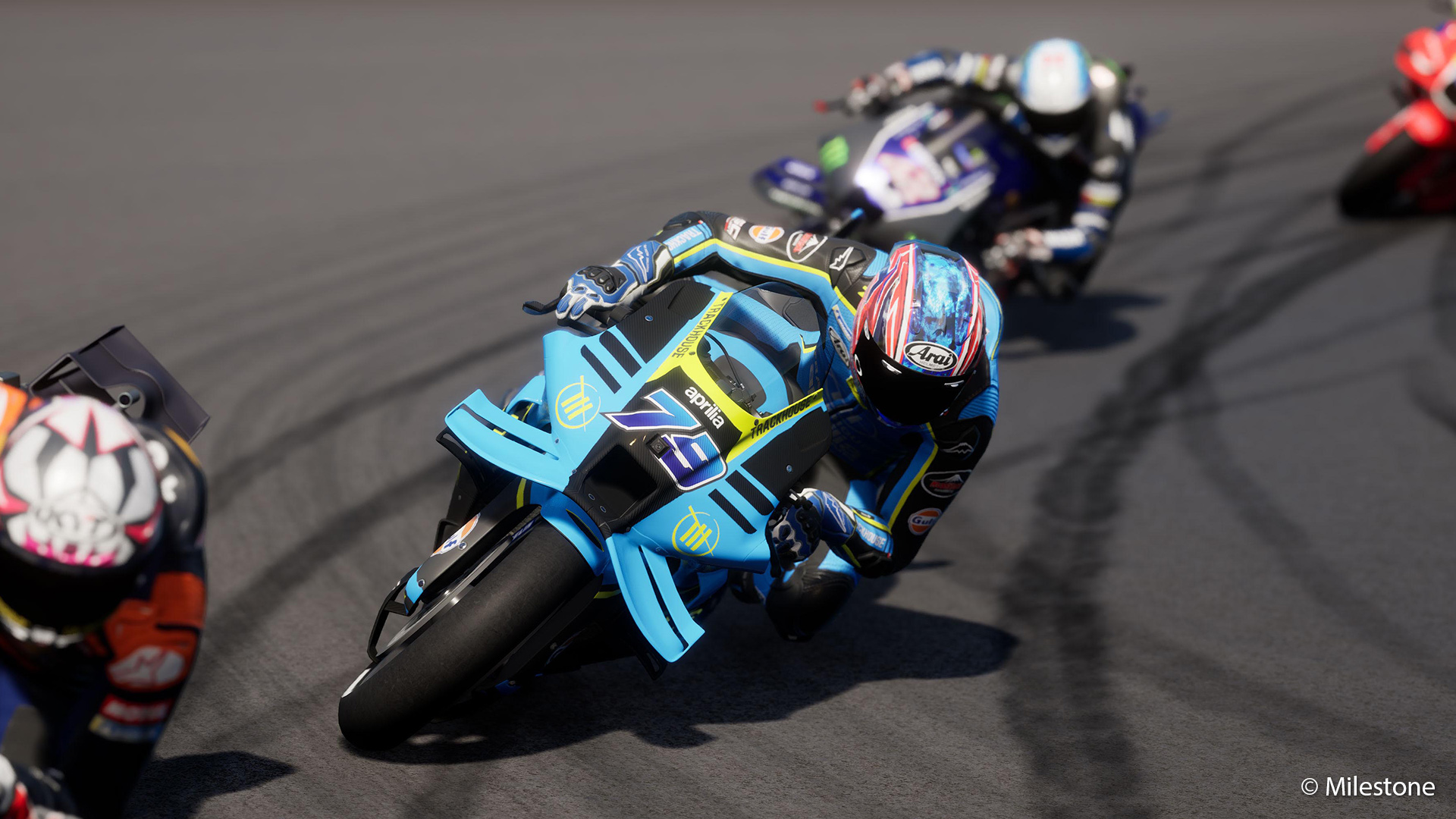 Zusätzlich wurde der „Race Off“-Modus um neue Inhalte erweitert, darunter der Austragungsort Canterbury Park sowie neue Rennformate mit seriennahen Motorrädern. Fortschritte im Spiel werden durch Sammelkarten belohnt, die Fahrer und Strecken abbilden und teilweise von der Künstlerin Ranka Fujiwara gestaltet wurden. Im Mehrspielerbereich unterstützt das Spiel plattformübergreifendes Spielen, größere Teilnehmerfelder und einen geteilten Bildschirm für lokale Partien. Darüber hinaus stehen umfangreiche Editor-Funktionen zur Verfügung, mit denen Anpassungen an Helmen, Startnummern und Designs vorgenommen und geteilt werden können.