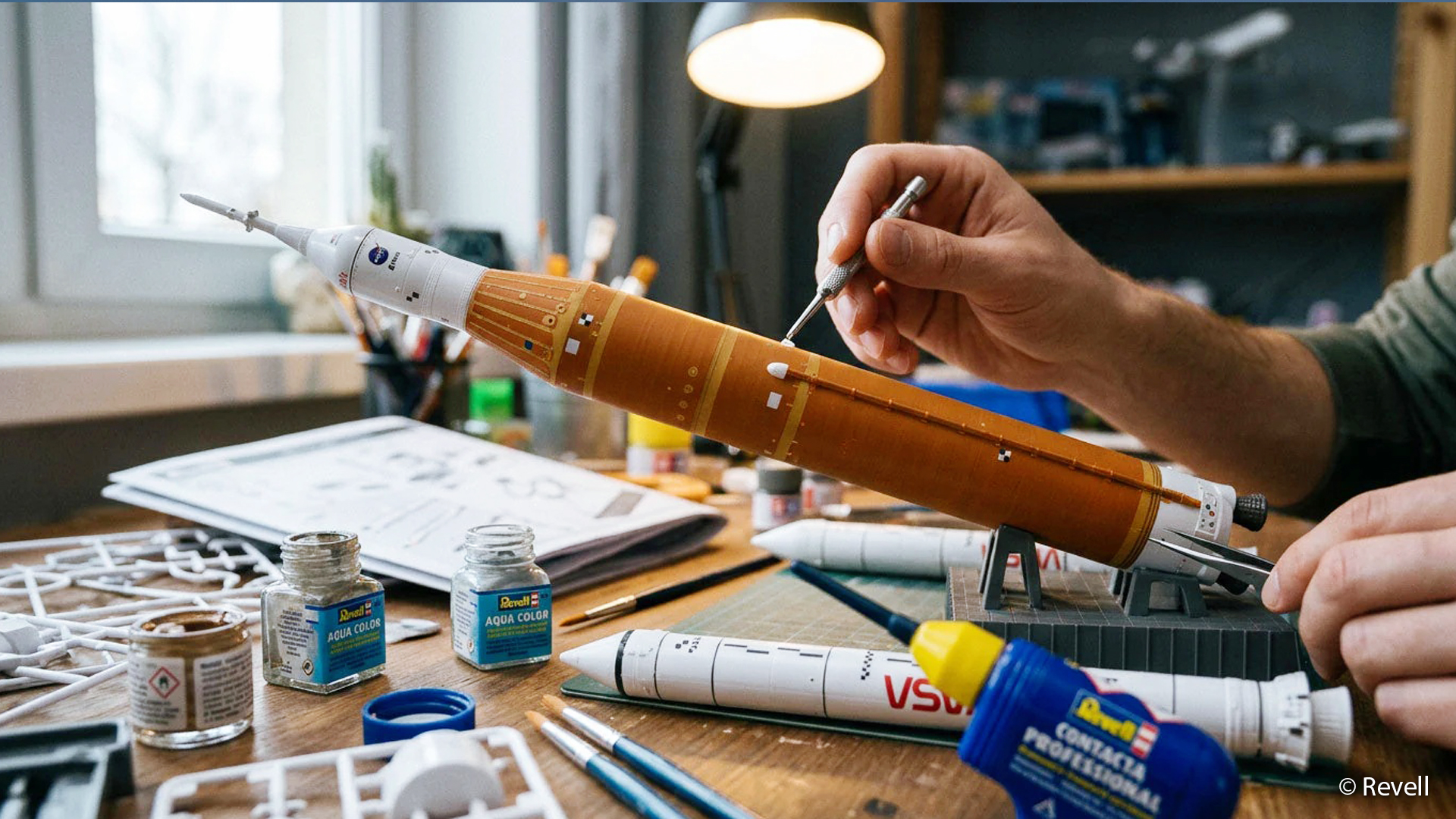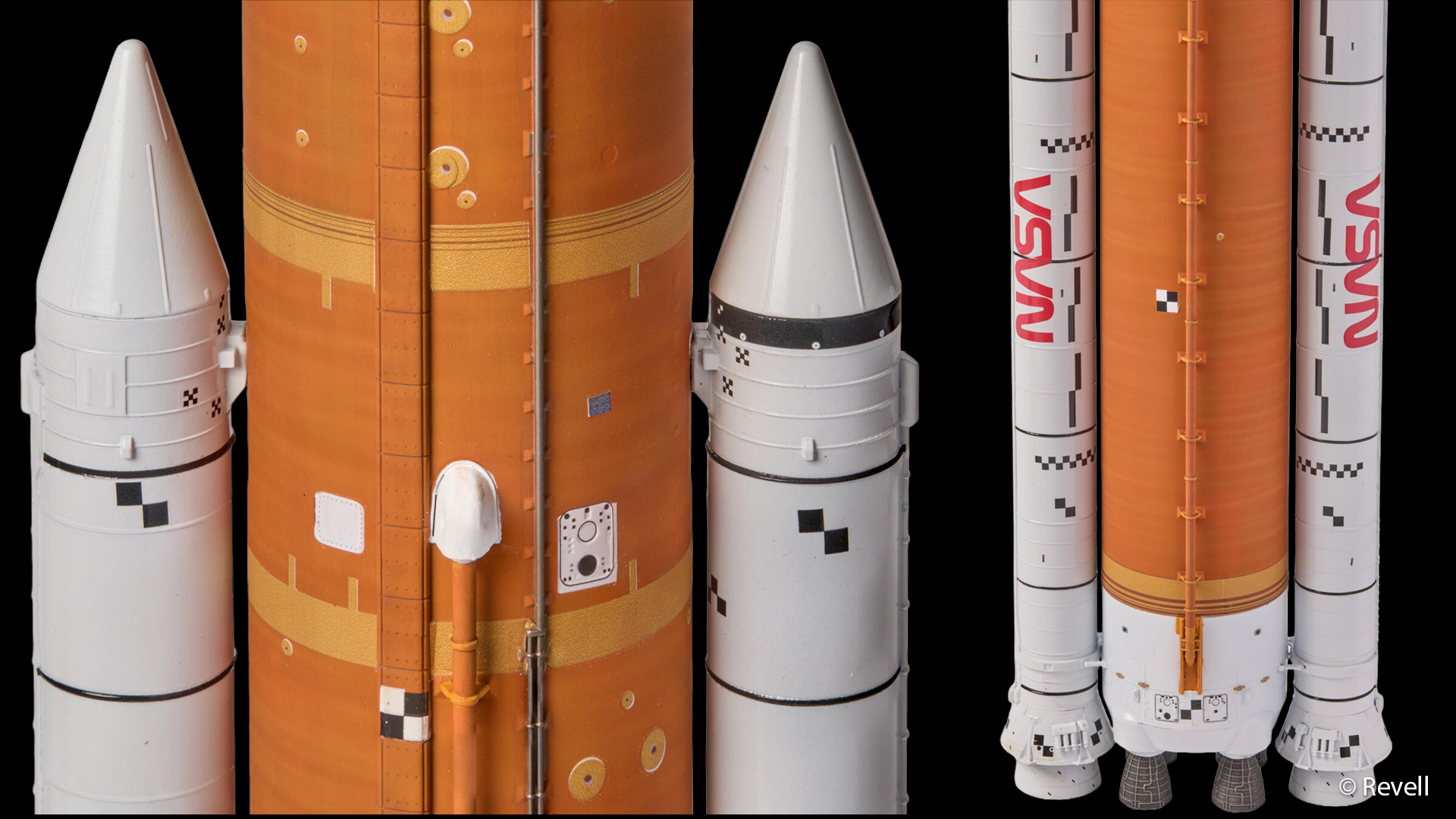 Die NASA bezeichnet das Space Launch System gerne als die stärkste Rakete, die je gebaut wurde – und das ist kein Marketingsprech. In ihrer aktuellen Konfiguration erreicht die SLS Block 1 beim Start einen Schub von rund 4.000 Tonnen, was rund 15 Prozent mehr ist als die legendäre Saturn V. Mit 98 Metern Höhe überragt sie die meisten Stadtbauten und trägt das Orion-Raumschiff samt Besatzung direkt auf Mondtransferkurs. Das Revell-Modell bildet all das in 1:144 nach. Vom charakteristischen orangefarbenen Kern über die weißen Booster bis zur Orion-Kapsel an der Spitze. Wer die Rakete einmal live im TV gesehen hat, erkennt die Proportionen sofort.