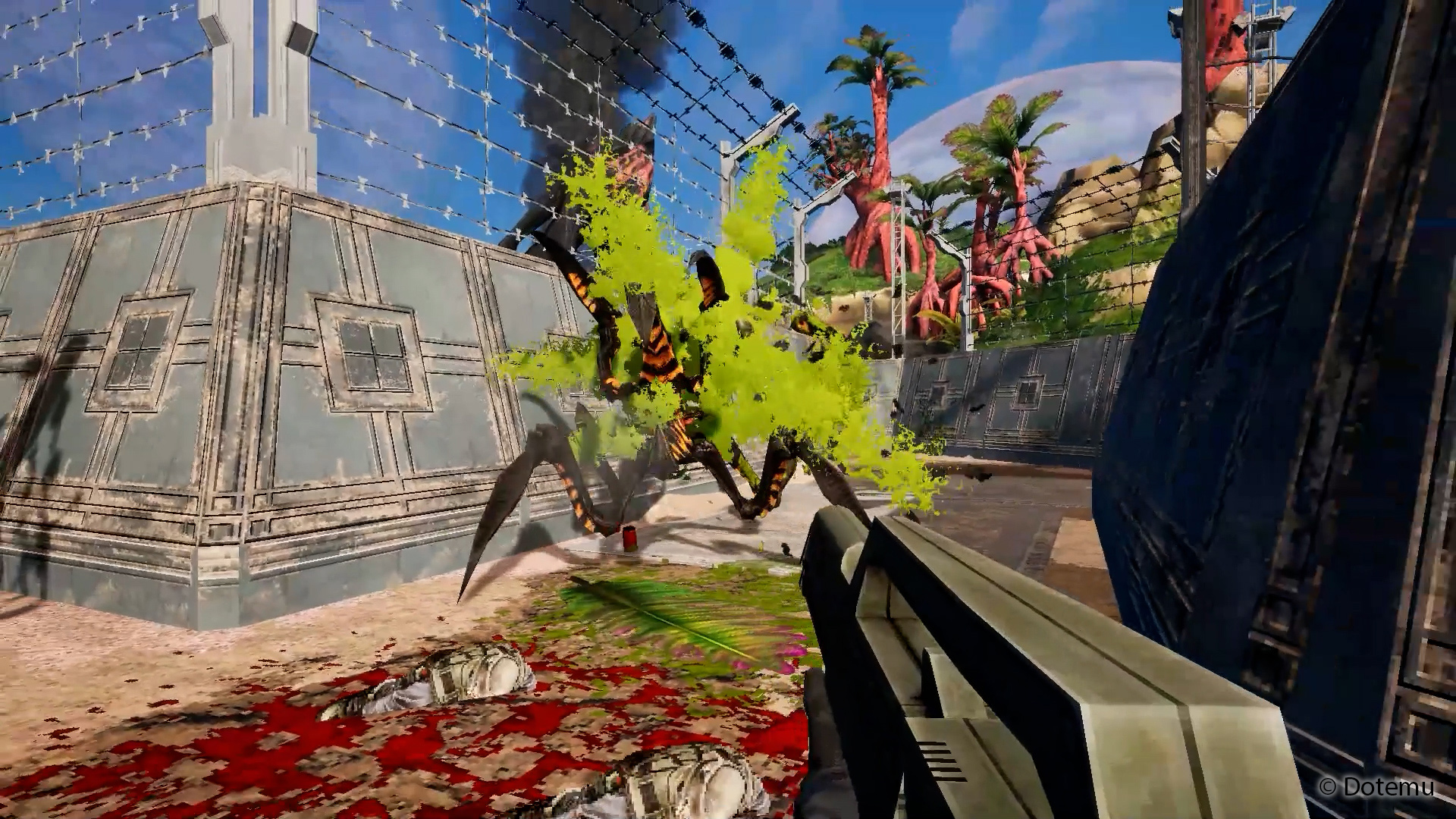Insgesamt umfasst das Arsenal 14 Waffen, darunter das aus dem Franchise bekannte Morita-Gewehr, sowie 11 taktische Unterstützungsoptionen. Ergänzt wird das Angebot durch den mechanischen Zweibeiner M7 Razorback. Die Präsentation orientiert sich an einer 3D-Pixel-Optik, die den Stil klassischer Shooter aufgreift.