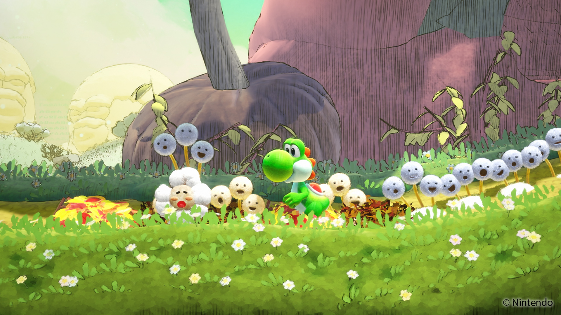 Yoshi greift dabei auf bekannte Fähigkeiten zurück, darunter das Verschlingen von Objekten und das Werfen von Eiern sowie Bewegungsoptionen wie Flatterflug und Stampfattacke. Neu hinzu kommt ein Schwanzschwung, mit dem Kreaturen auf den Rücken des Charakters befördert werden können. Die Interaktion mit den entdeckten Wesen erfolgt auf unterschiedliche Weise, etwa durch Beobachtung, gezielte Aktionen oder experimentelle Herangehensweisen. Jede Begegnung trägt dazu bei, neue Informationen zu sammeln und die Inhalte des Buches zu erweitern.