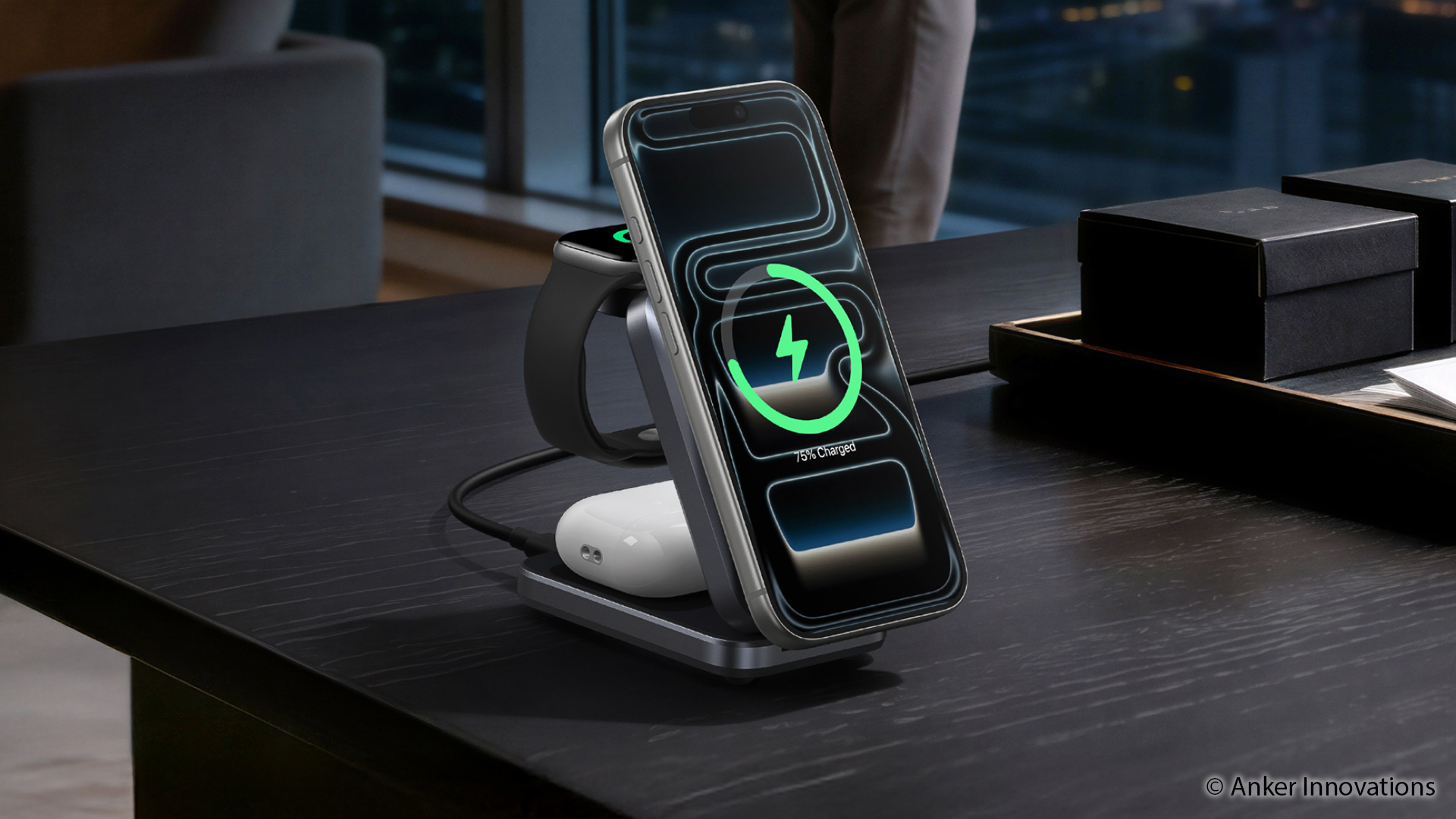 Ergänzend präsentierte das Unternehmen eine drahtlose 3-in-1-Ladestation mit faltbarem Design. Diese unterstützt den Qi-2.2-Standard und kann neben Smartphones auch Smartwatches und kabellose Kopfhörer gleichzeitig mit Energie versorgen. Ein integriertes Kühlsystem soll die Temperatur der geladenen Geräte niedrig halten.