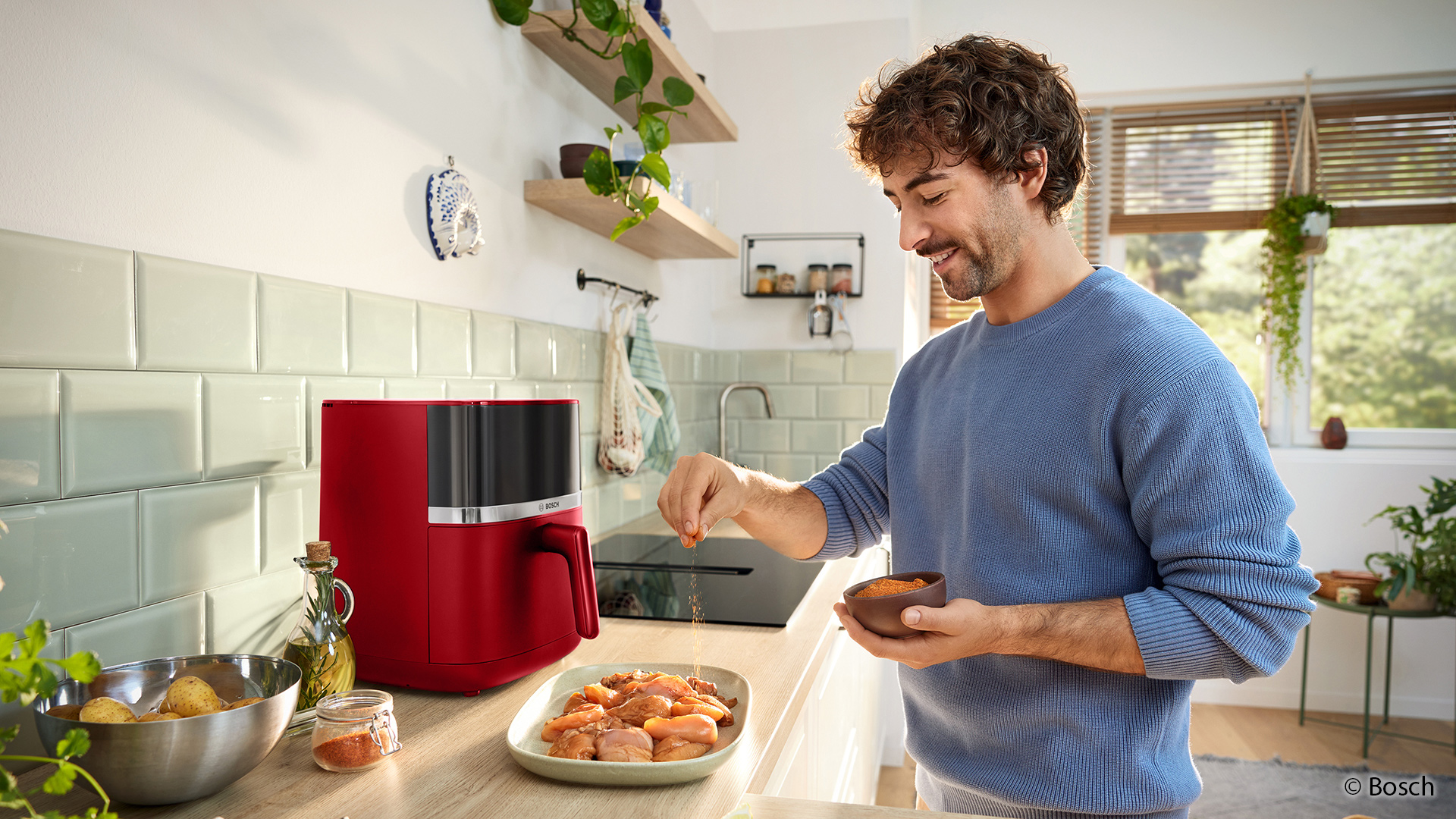 Die Robert Bosch Hausgeräte GmbH ergänzt ihr Sortiment an Heißluftfritteusen um zwei zusätzliche Farboptionen. Neben Schwarz sind die Modelle der Serien 4 und 6 künftig auch in Dark Cream sowie teilweise in Deep Red erhältlich.