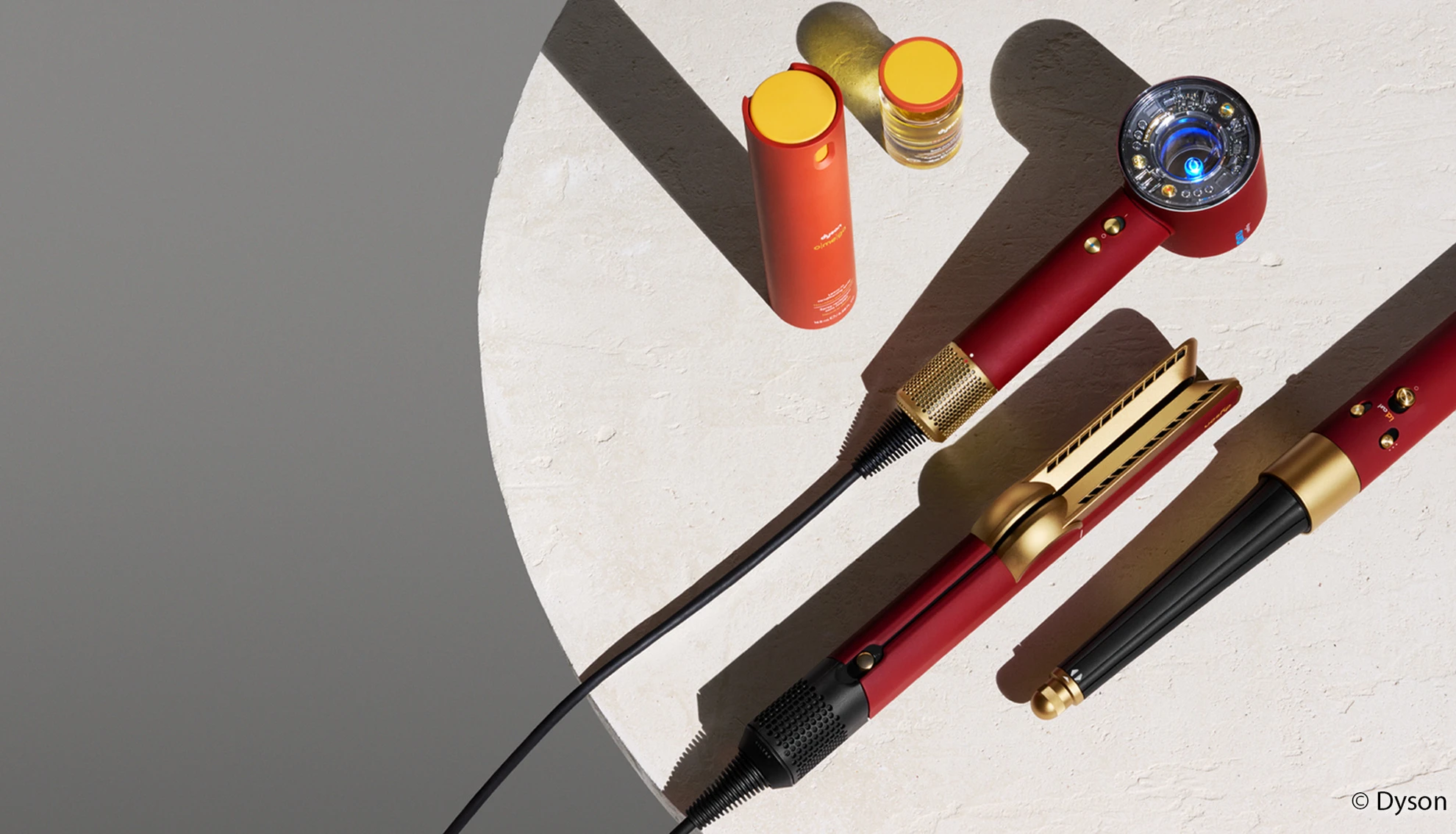 Die Samtrot-und-Gold-Edition orientiert sich gestalterisch an tiefen Rottönen, die an historische Ockerpigmente erinnern, und wird durch metallisch schimmernde Goldakzente ergänzt. Dyson verweist in diesem Zusammenhang auf die emotionale Wirkung der Farbe Rot sowie auf die handwerkliche Präzision des eigenen CMF-Designansatzes, der Farbe, Material und Oberflächenstruktur in den Mittelpunkt stellt. Ziel sei es, Haarstylinggeräte nicht nur als funktionale Werkzeuge, sondern auch als visuell hochwertige Produkte zu positionieren.