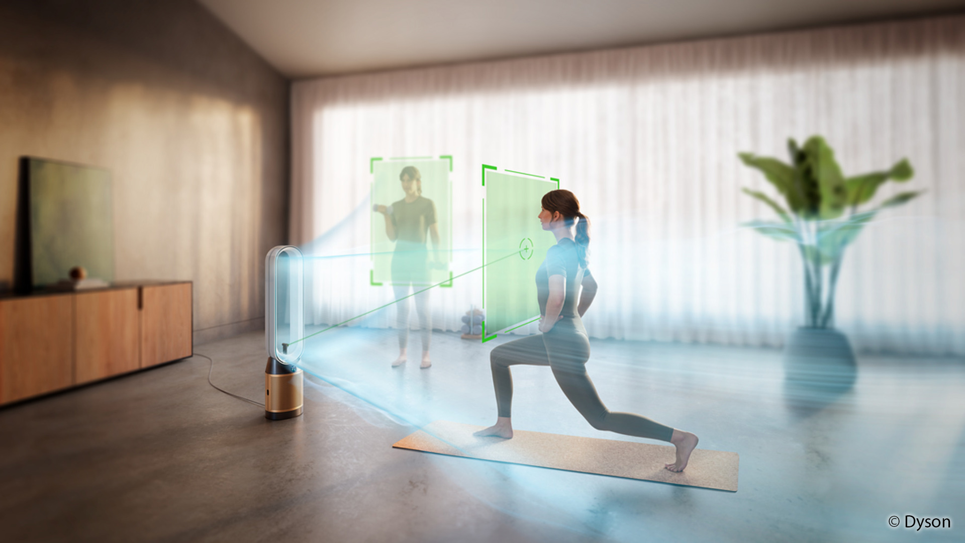 Die Luftprojektion richtet sich dynamisch an den Aufenthaltsort von Personen aus und soll dadurch die Verteilung gereinigter Luft im Raum optimieren. Gleichzeitig bleibt die Funktion auch bei Bewegungen aktiv und passt sich entsprechend an.