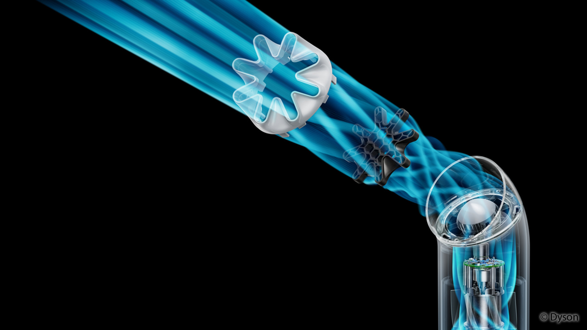 Der Ventilator wiegt 212 Gramm und ist damit auf ein geringes Gesamtgewicht ausgelegt. Laut Hersteller erreicht der Luftstrom Geschwindigkeiten von bis zu 25 Metern pro Sekunde, während der Motor mit bis zu 65.000 Umdrehungen pro Minute arbeitet. Die Konstruktion ist darauf ausgelegt, eine schnelle und gezielte Luftzirkulation zu erzeugen. Eine speziell entwickelte Düse soll dabei Geräusche reduzieren, indem sie Strömungs- und hochfrequente Klanganteile minimiert.