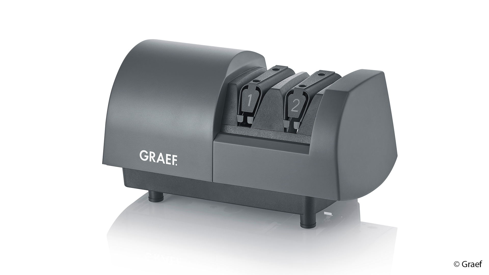 Mit dem SG530 bietet Graef eine erweiterte Variante mit drei Bearbeitungsstufen an. Neben zwei Schleifstufen kommt ein zusätzliches Polierverfahren zum Einsatz, das die Schneide weiter verfeinern soll. Das Modell ist nicht nur für klassische Küchenmesser geeignet, sondern kann auch bei Jagd-, Filetier- oder Taschenmessern eingesetzt werden.