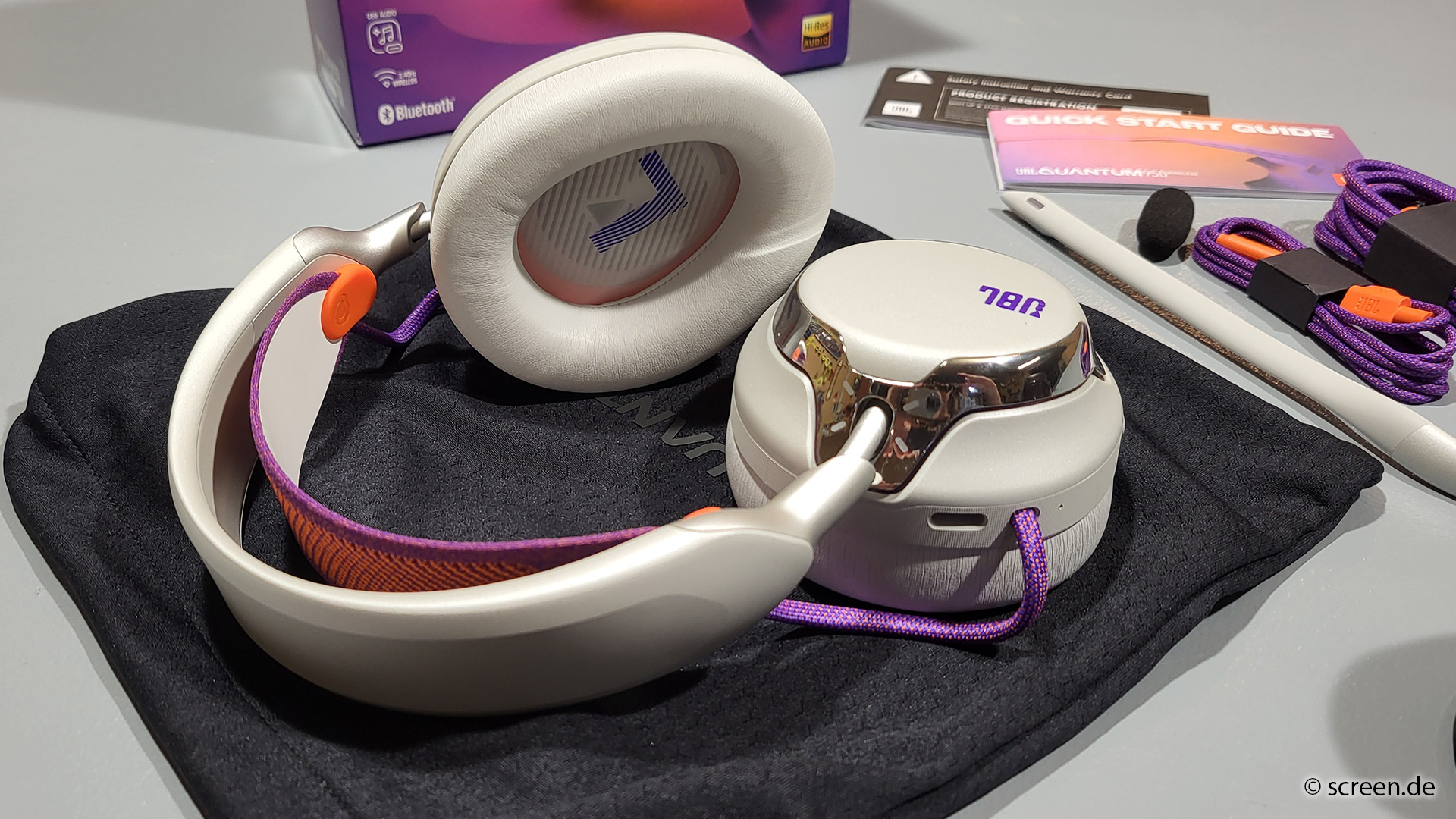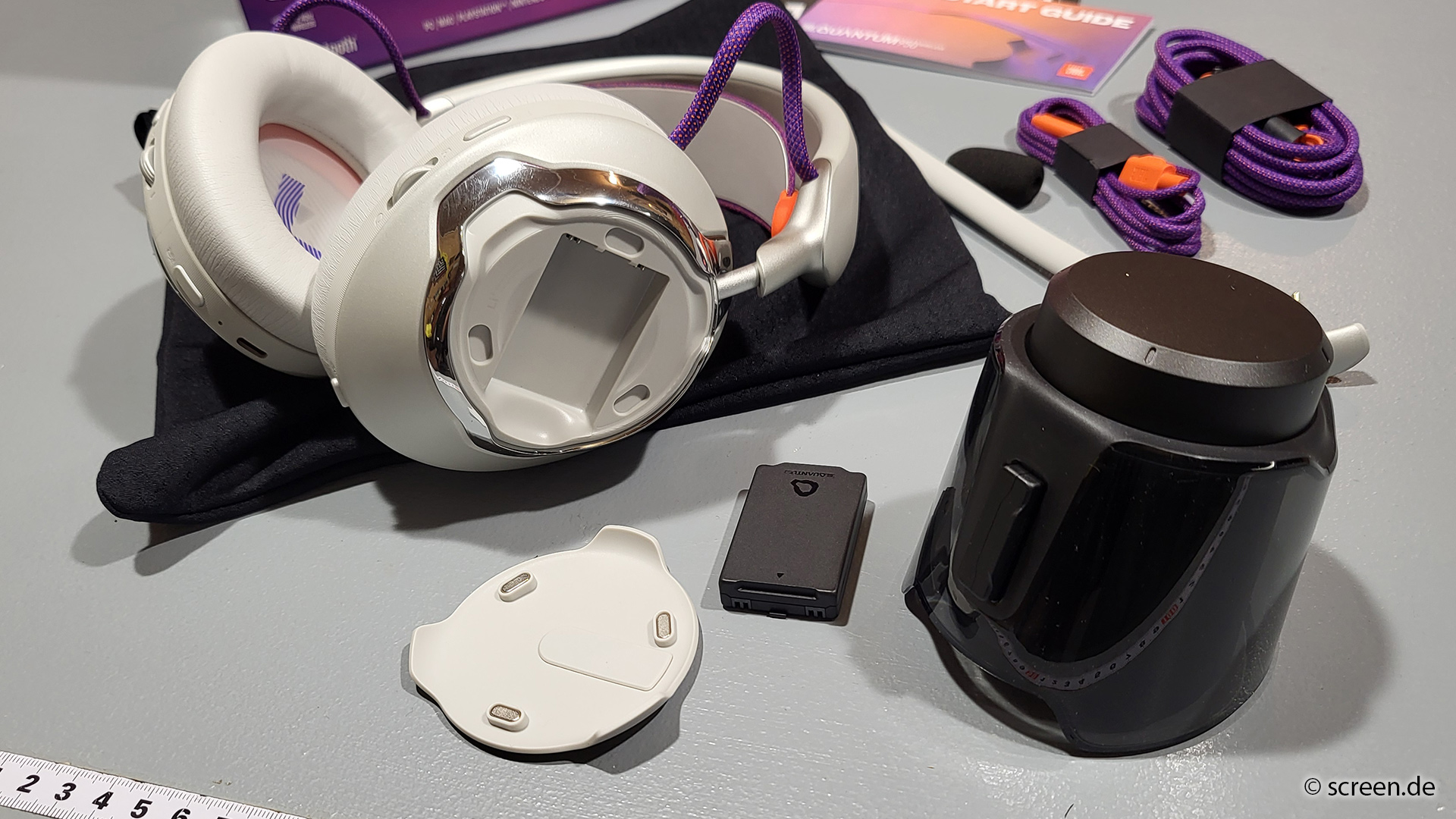 Wechselbare Akkus, Headtracking, aktive Geräuschunterdrückung und eine eigene Basisstation gehören zur Ausstattung des Quantum 950 ebenso wie parallele Verbindungen per 2,4 GHz und Bluetooth, eine umfangreiche Software-Anbindung sowie ein modularer Aufbau mit austauschbaren Komponenten. JBL schnürt hier also ein Gesamtpaket, das klar auf Komfort, Flexibilität und möglichst unterbrechungsfreies Gaming ausgelegt ist. Doch reicht das, um der Konkurrenz das Wasser abzugraben?