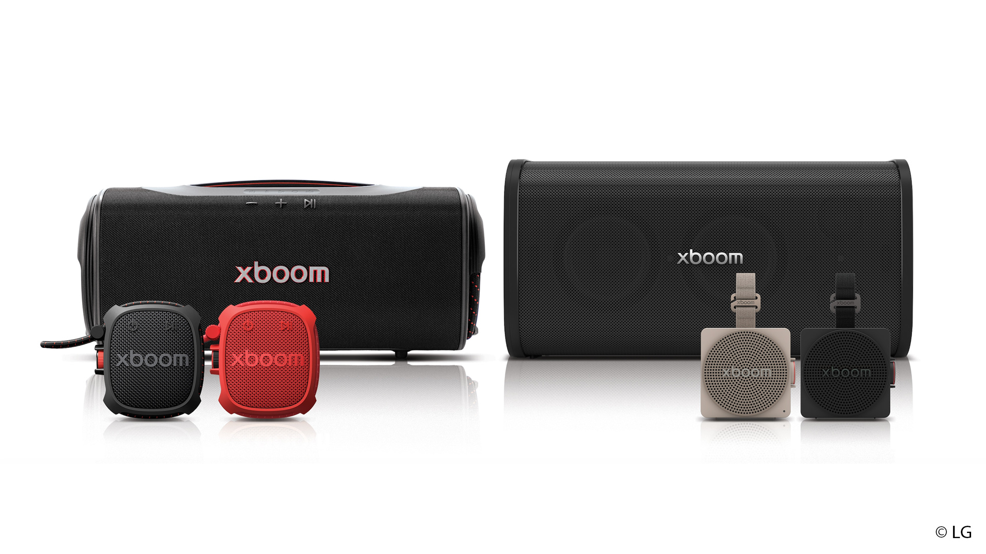 Im Bereich der mobilen Lautsprecher führt LG die Kooperation mit will.i.am fort und erweitert die Serie „xboom by will.i.am“. Neu vorgestellt wurden der Stage 501 mit Fokus auf Karaoke-Anwendungen, der Outdoor-Lautsprecher Blast mit einer angegebenen Akkulaufzeit von bis zu 35 Stunden, der kompakte Mini sowie das robuste Modell Rock, das nach Militärstandards getestet wurde. Alle Geräte integrieren die Funktion FYI.RAiDiO, die Interaktionen mit KI-basierten Personas und DJs ermöglicht. Ergänzend werden synchronisierte Lichteffekte unter der Bezeichnung AI Lighting angeboten.
