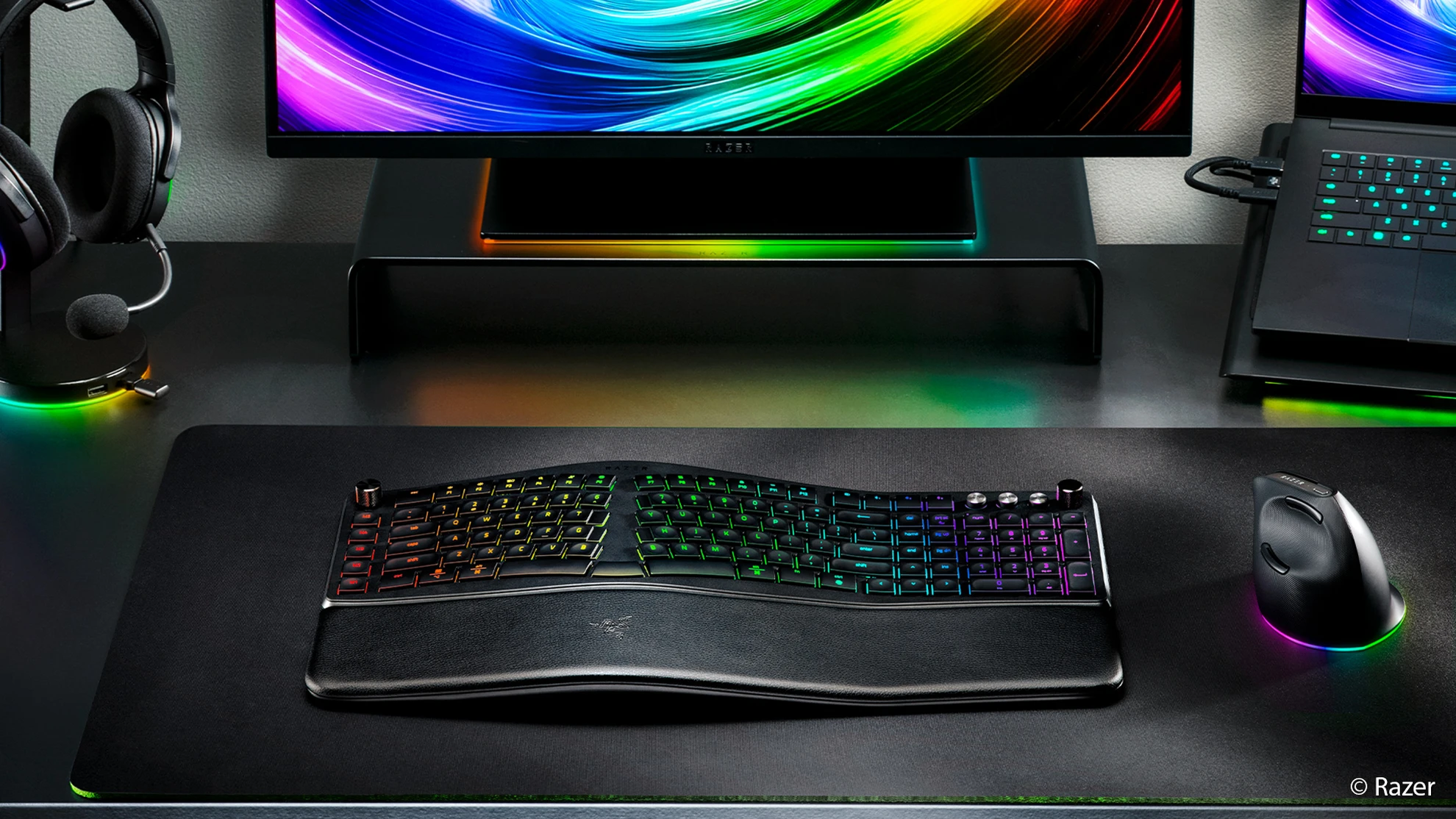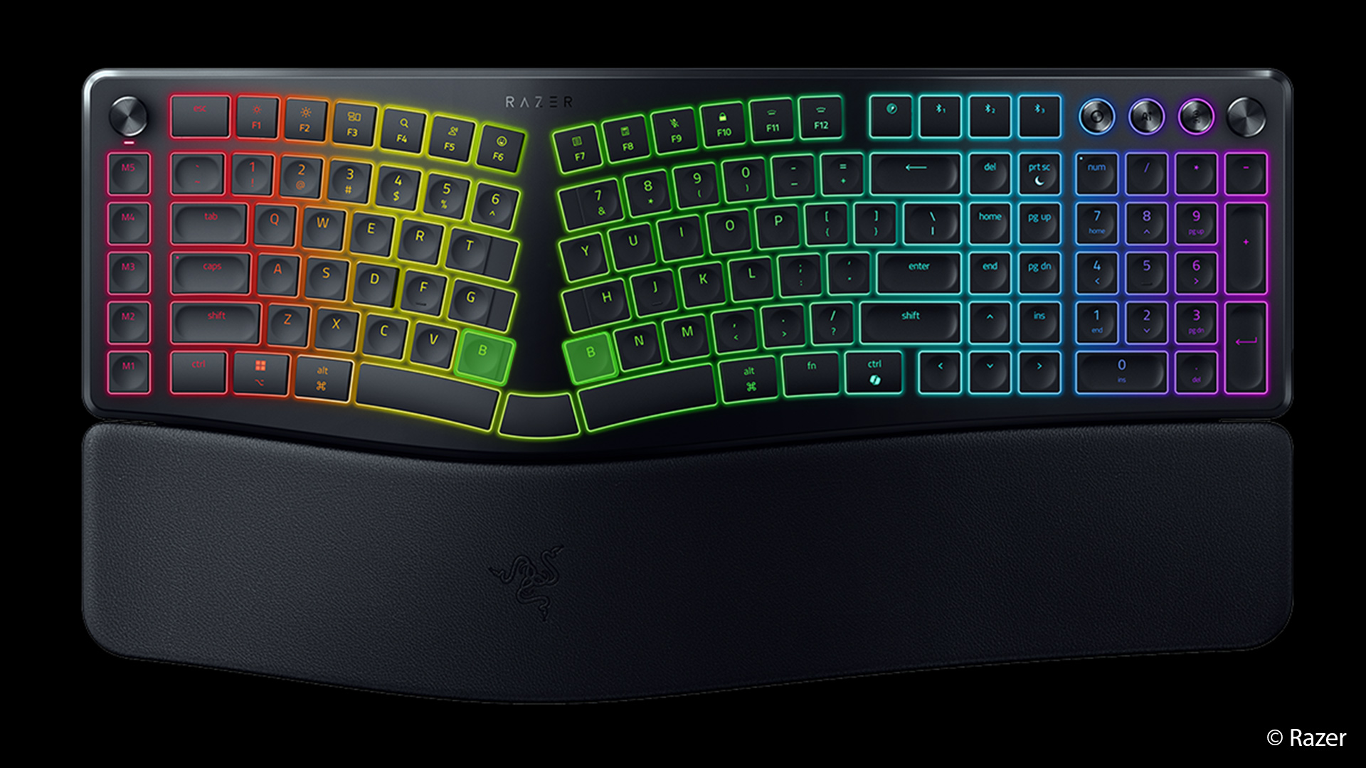 Mit der Pro Type Ergo präsentiert Razer eine neue Tastatur, die auf ergonomisches Arbeiten und produktivitätsorientierte Funktionen ausgelegt ist. Das Modell kombiniert ein geteiltes Layout mit kabelloser Konnektivität und integrierten Steuerungsoptionen.