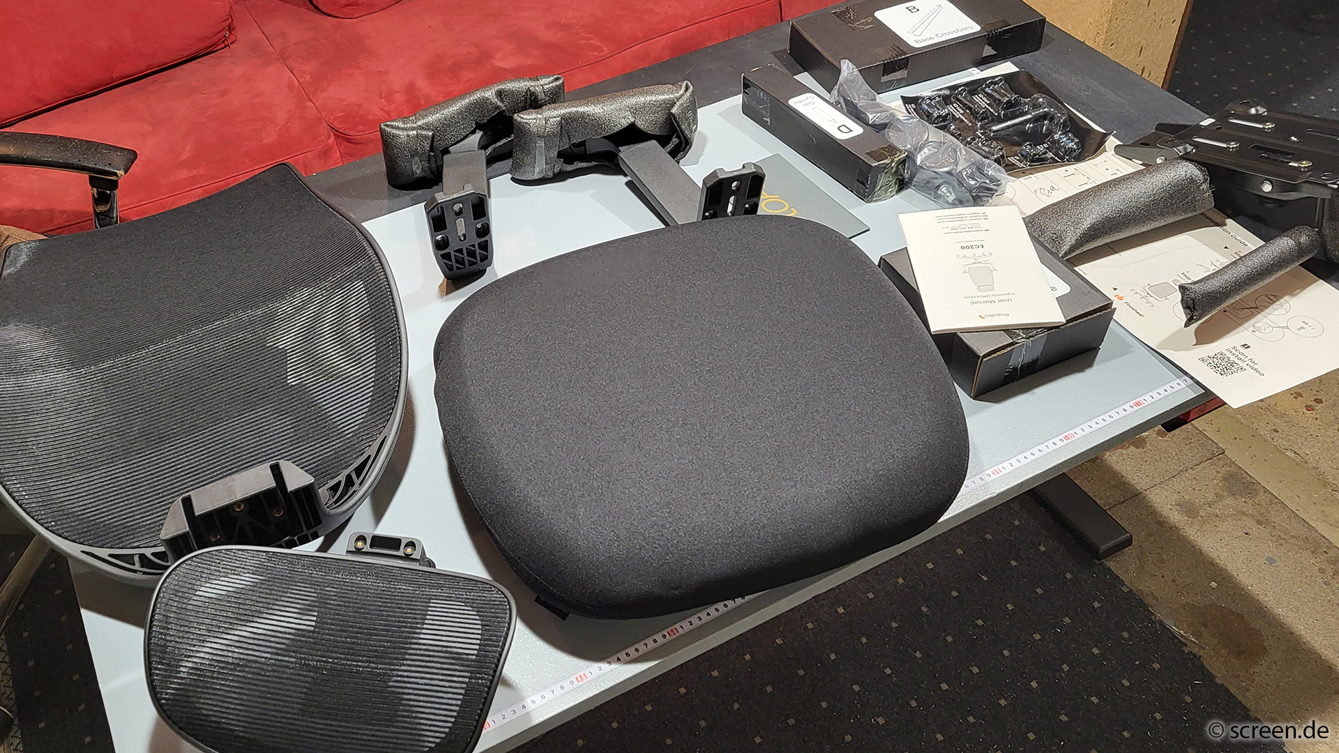 Der EC200 wird zerlegt geliefert. Werkzeug und Ersatzschrauben liegen bei, die Bauteile sind klar gekennzeichnet. Die Anleitung ist übersichtlich bebildert und logisch aufgebaut. Der Aufbau ist mit einer Einzelperson in 15 bis 20 Minuten gestemmt. Probleme bereitete uns lediglich das Anbringen der Kopfstütze, deren Ausrichtung etwas ungewöhnlich anmutet.