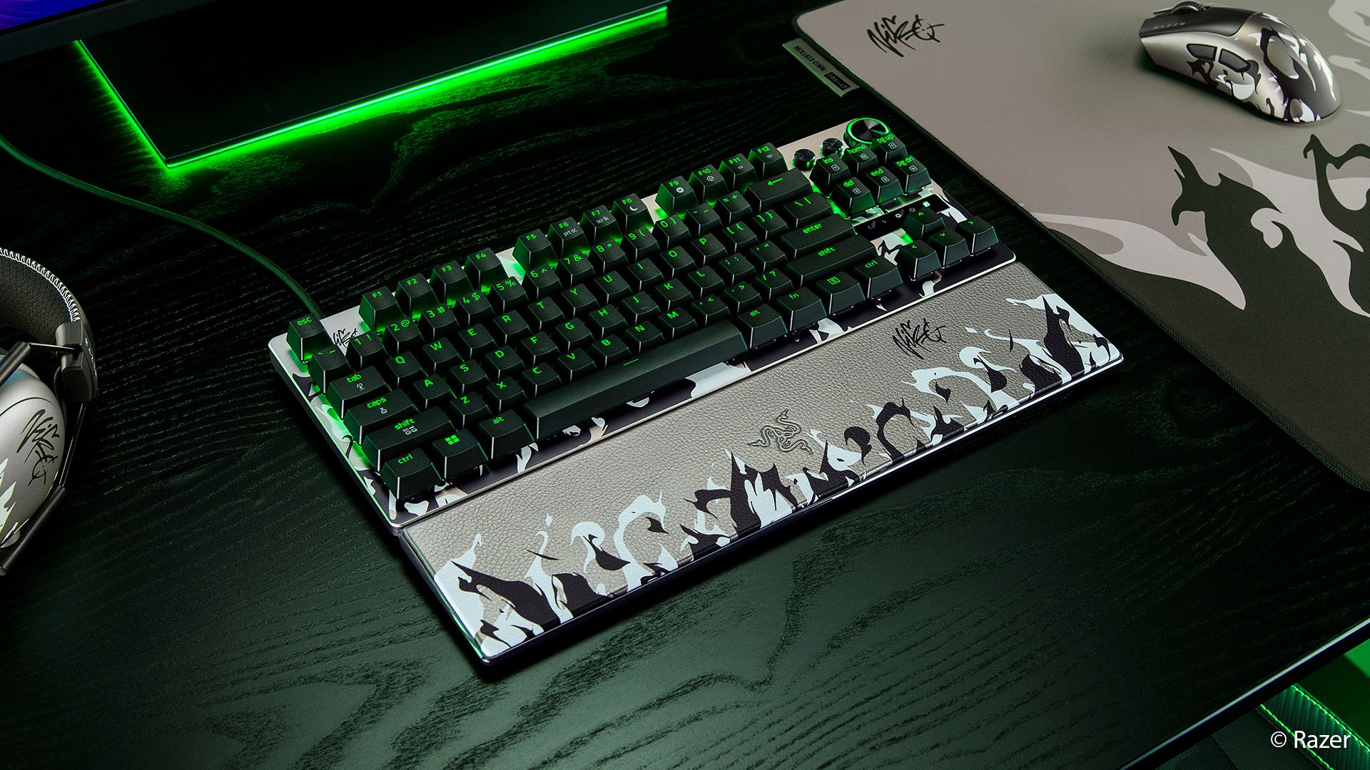 Mit der Razer Huntsman V3 Pro TKL 8KHz NiKo Edition ergänzt eine analoge optische Tastatur das Line-up. Sie bietet einen Rapid Trigger Mode, individuell einstellbare Auslösepunkte sowie 8.000 Hz HyperPolling für besonders schnelle Eingabereaktionen.
