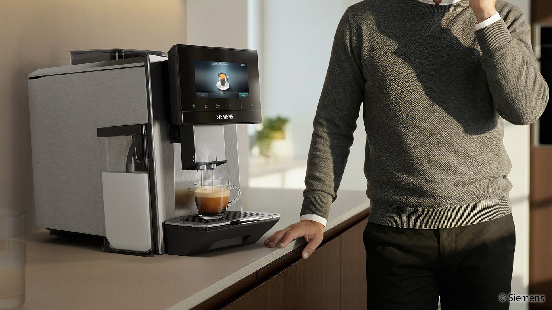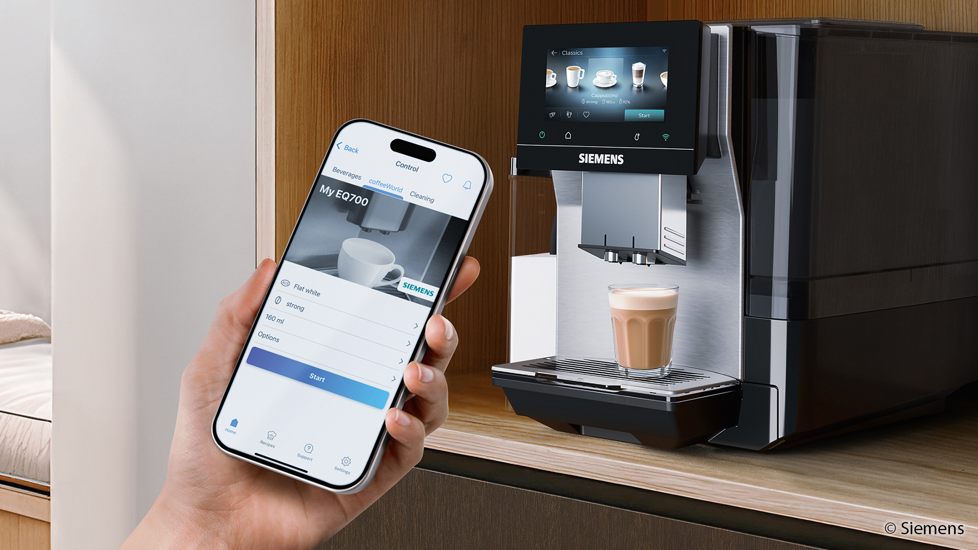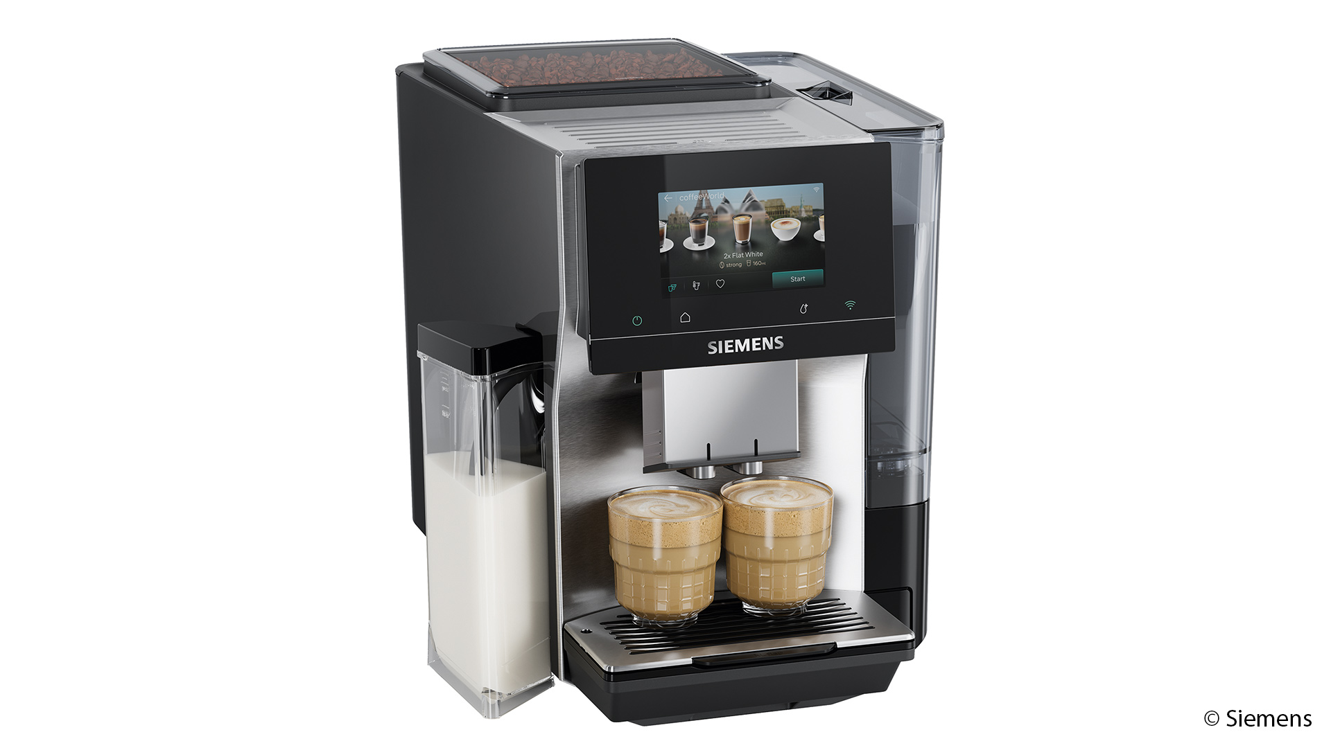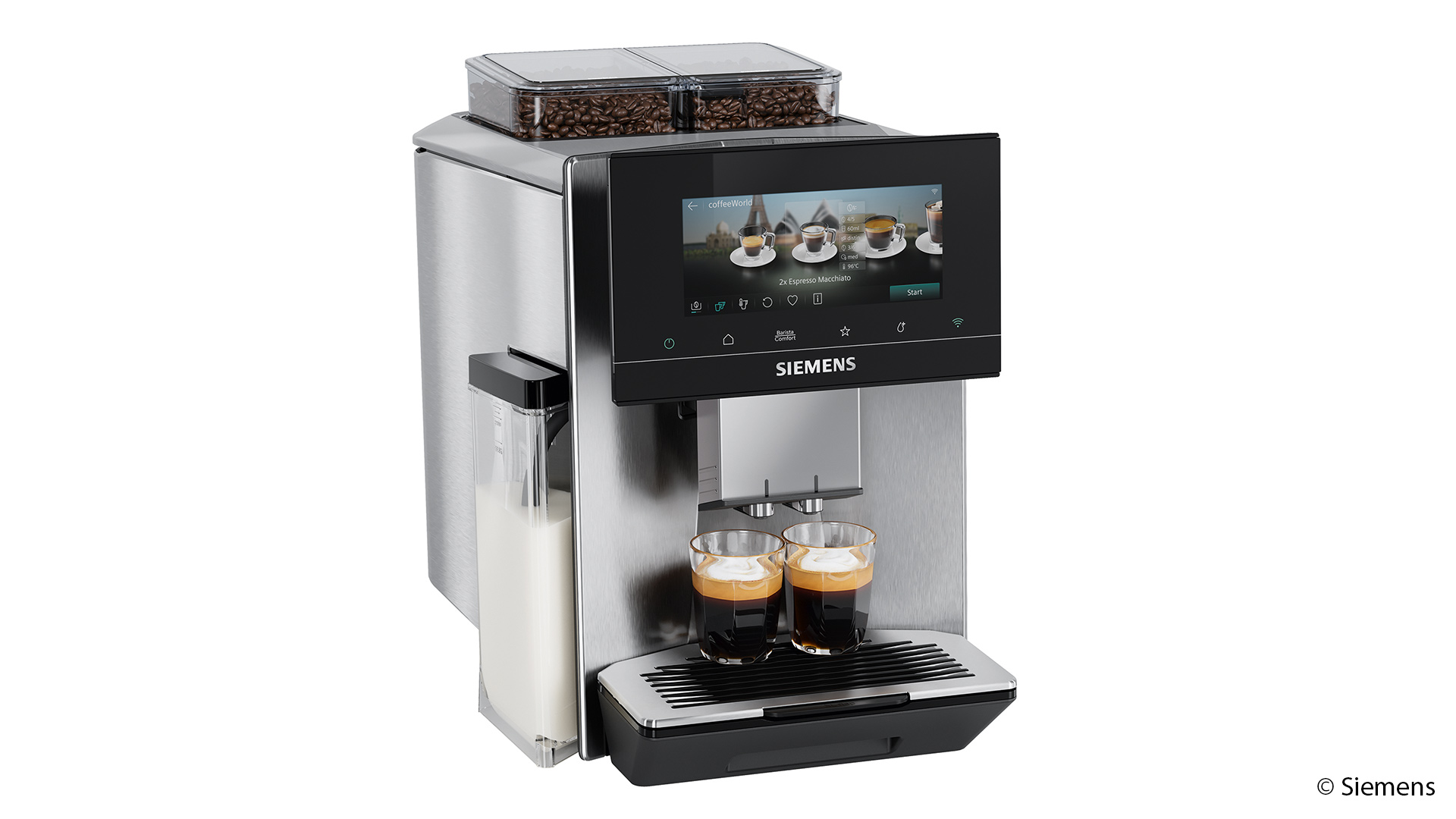 Mit dem EQ700 iAroma ergänzt Siemens sein Sortiment um ein Modell, das eine größere Getränkevielfalt und eine optimierte Bedienoberfläche vereint. Je nach kultureller Tradition und persönlicher Vorliebe unterscheidet sich die Zubereitung von Kaffee erheblich. Der Vollautomat trägt dem durch eine breite Auswahl an Spezialitäten Rechnung. Direkt am Gerät stehen bis zu 31 Getränke zur Verfügung, darunter internationale Varianten aus der integrierten coffeeWorld. Über die Siemens Home Appliances App erhöht sich die Auswahl auf 41 Getränke. Neu hinzugekommen sind sechs XL-Varianten wie Americano XL oder Cappuccino XL.