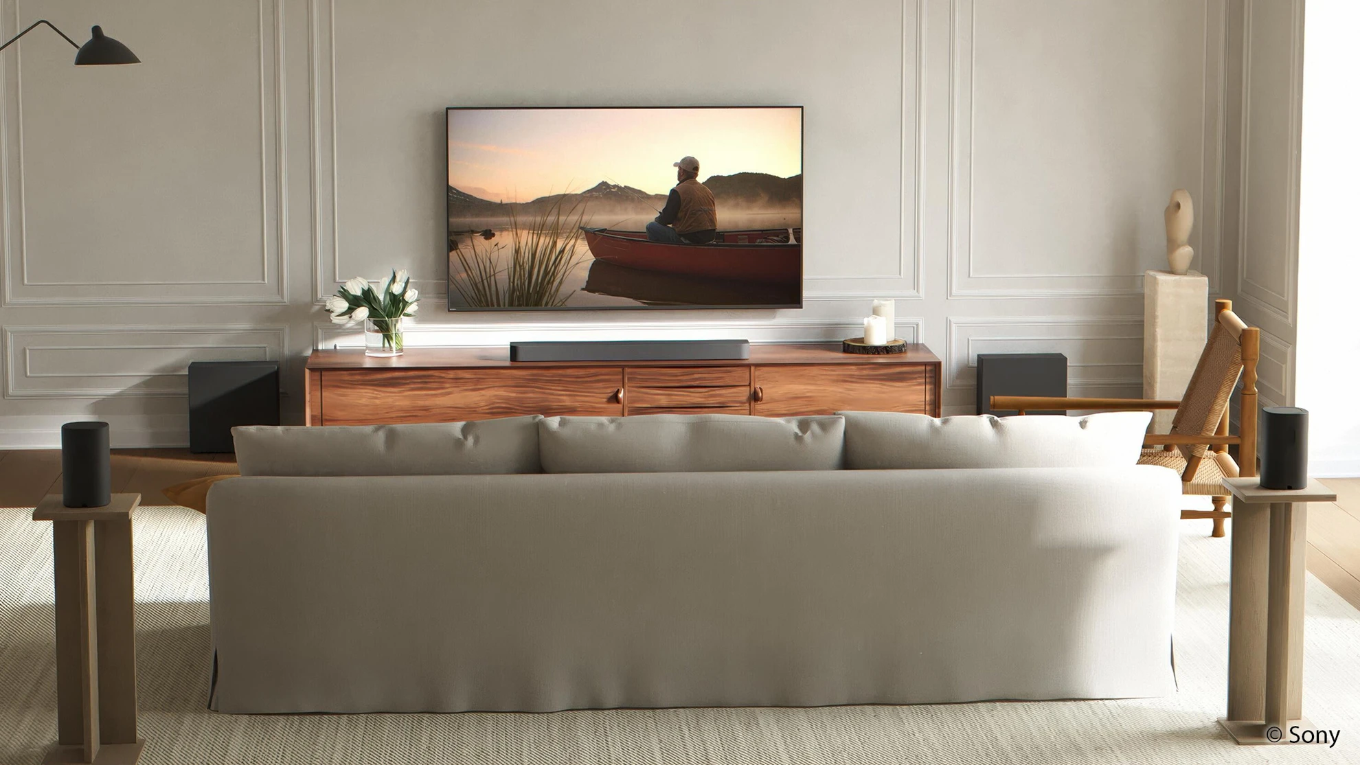 Zur aktualisierten Audio-Serie gehören die Soundbars BRAVIA Theatre Bar 7 und BRAVIA Theatre Bar 5 sowie die zusätzlichen Lautsprecher BRAVIA Theatre Sub 9, Sub 8 und Rear 9. Die Bar 7 verfügt über neun integrierte Lautsprechereinheiten und nutzt unter anderem nach oben und zur Seite gerichtete Treiber, um ein räumlicheres Klangbild zu erzeugen.