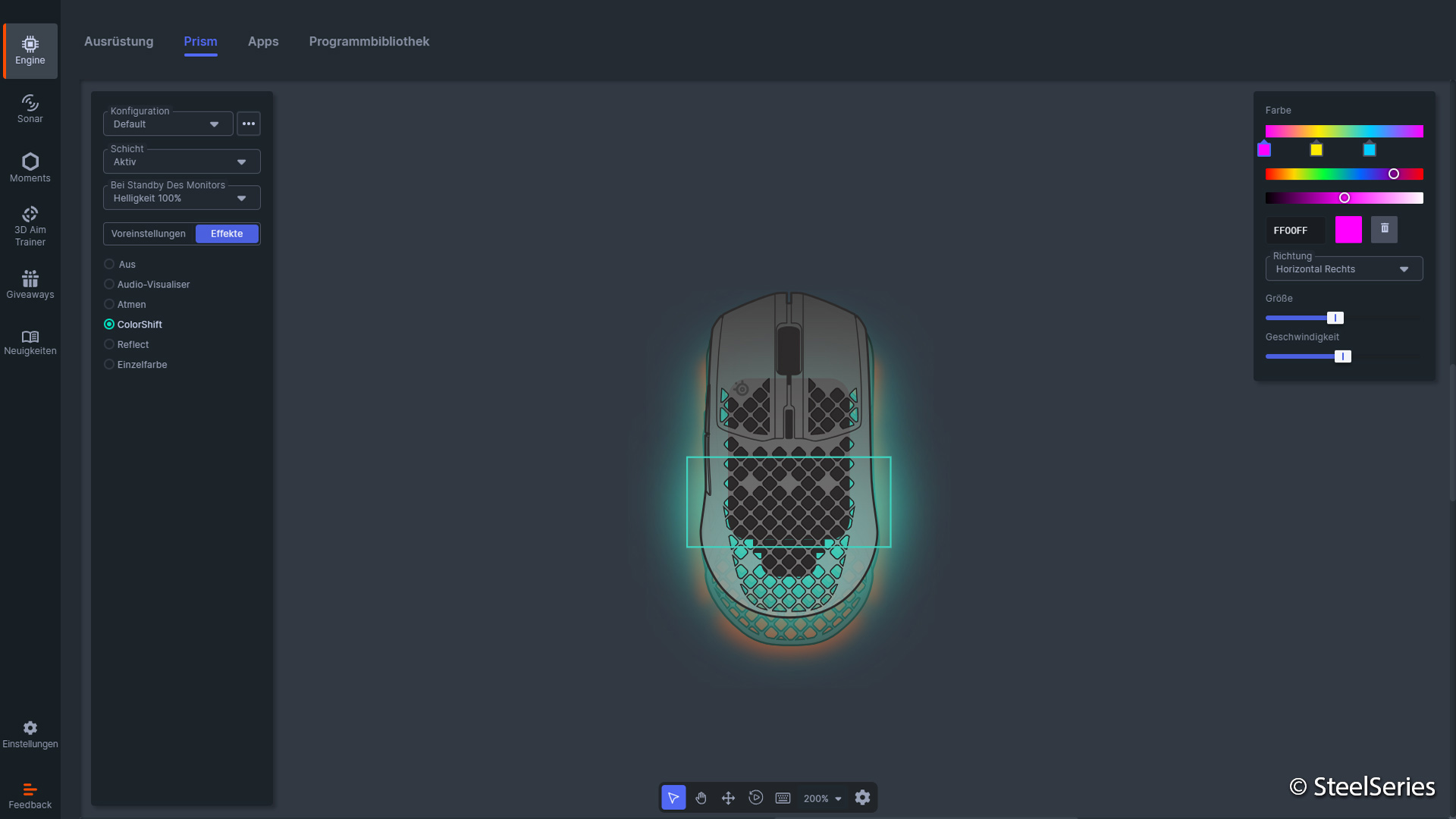 Auf Software-Seite kommt die bekannte GG-Suite mit ihrer großen Bandbreite an Einstellungsmöglichkeiten zum Einsatz. Von DPI-Stufen über Polling-Rate bis hin zu Sensor-Feinjustierungen lässt sich die Maus sehr individuell konfigurieren. Mit der Vielzahl an Optionen wächst allerdings auch die Komplexität. Die Software wirkt stellenweise etwas unübersichtlich, wenn man nur schnell grundlegende Anpassungen vornehmen möchte.
