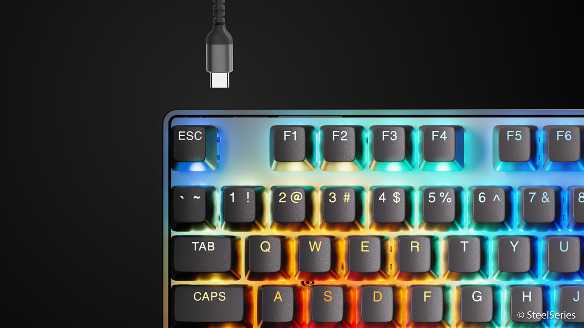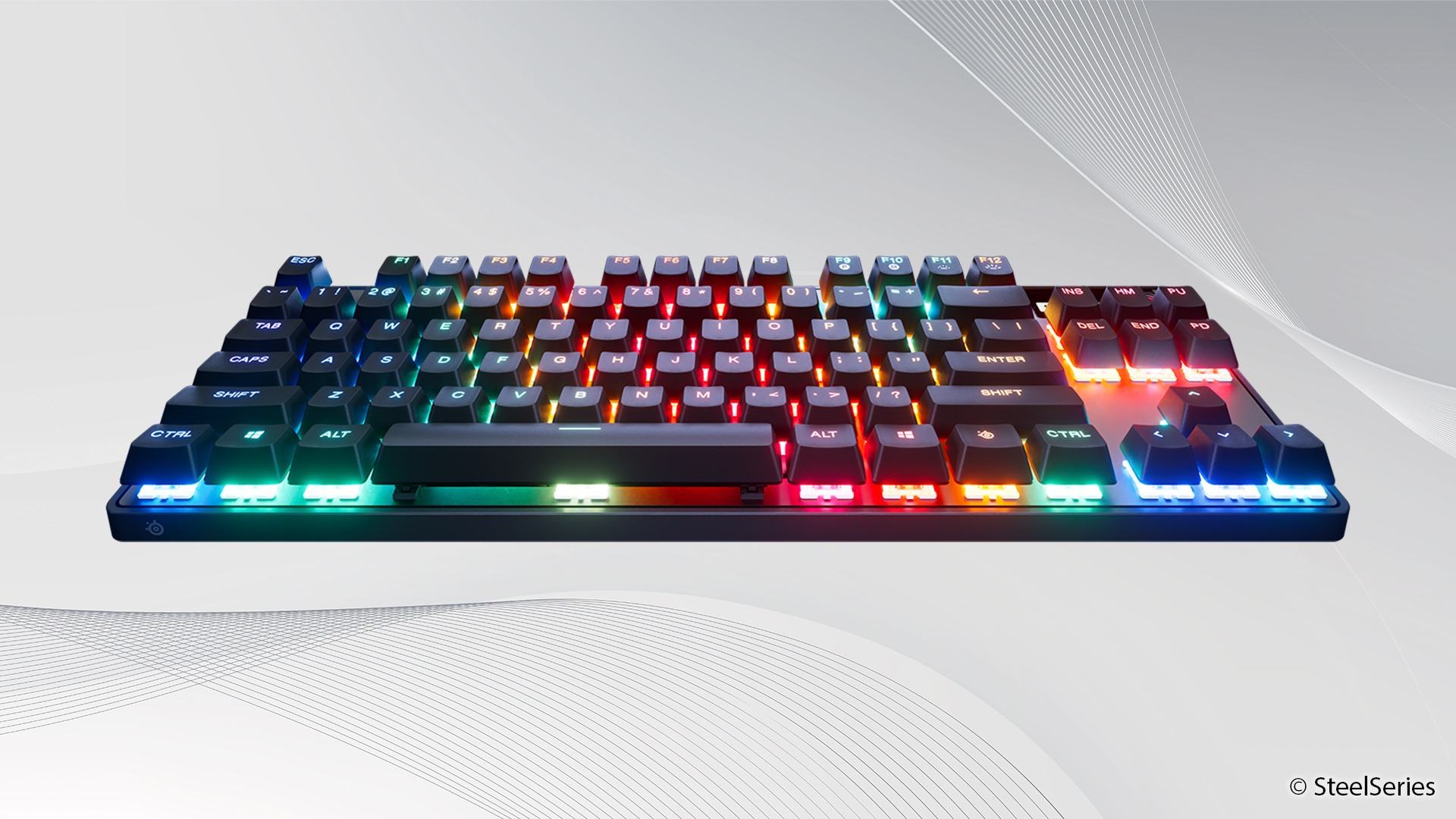 Wie das Kürzel im Namen schon andeutet, handelt es sich bei der hier getesteten Apex Pro um eine Tastatur mit Tenkeyless-Layout (TKL). Soll heißen, sie verzichtet auf einen Nummernblock und fällt dadurch deutlich kompakter aus als klassische Vollformat-Tastaturen. Gerade für Gamer ist das ein praktischer Vorteil, da mehr Platz für Mausbewegungen bleibt und beide Eingabegeräte näher beieinander liegen.