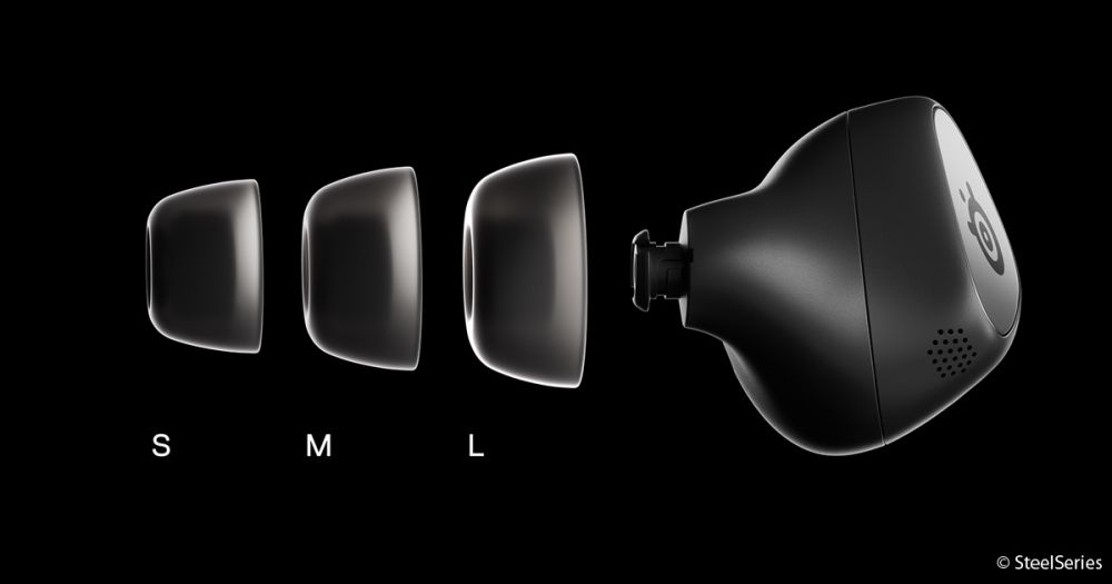 Die Earbuds bestehen ebenfalls aus Kunststoff und sind robust und gut verarbeitet. Die Form wirkt mit ihren abgerundeten Kanten und weichen Linien modern und liegt derart bequem in den Ohren, dass man glatt vergessen könnte, In-Ear-Kopfhörer zu tragen. Schon mit den für uns zu kleinen, werkseitig aufgestülpten Silikon-Ohreinsätzen sitzen die Stöpsel absolut zuverlässig, und das sogar beim Sport. Noch besser wurde es, als wir eine Nummer größer aufzogen. In Sachen Tragekomfort setzt SteelSeries hier eine echte Duftmarke, an der sich künftig alle anderen In-Ears in unserem Testlabor werden messen müssen.