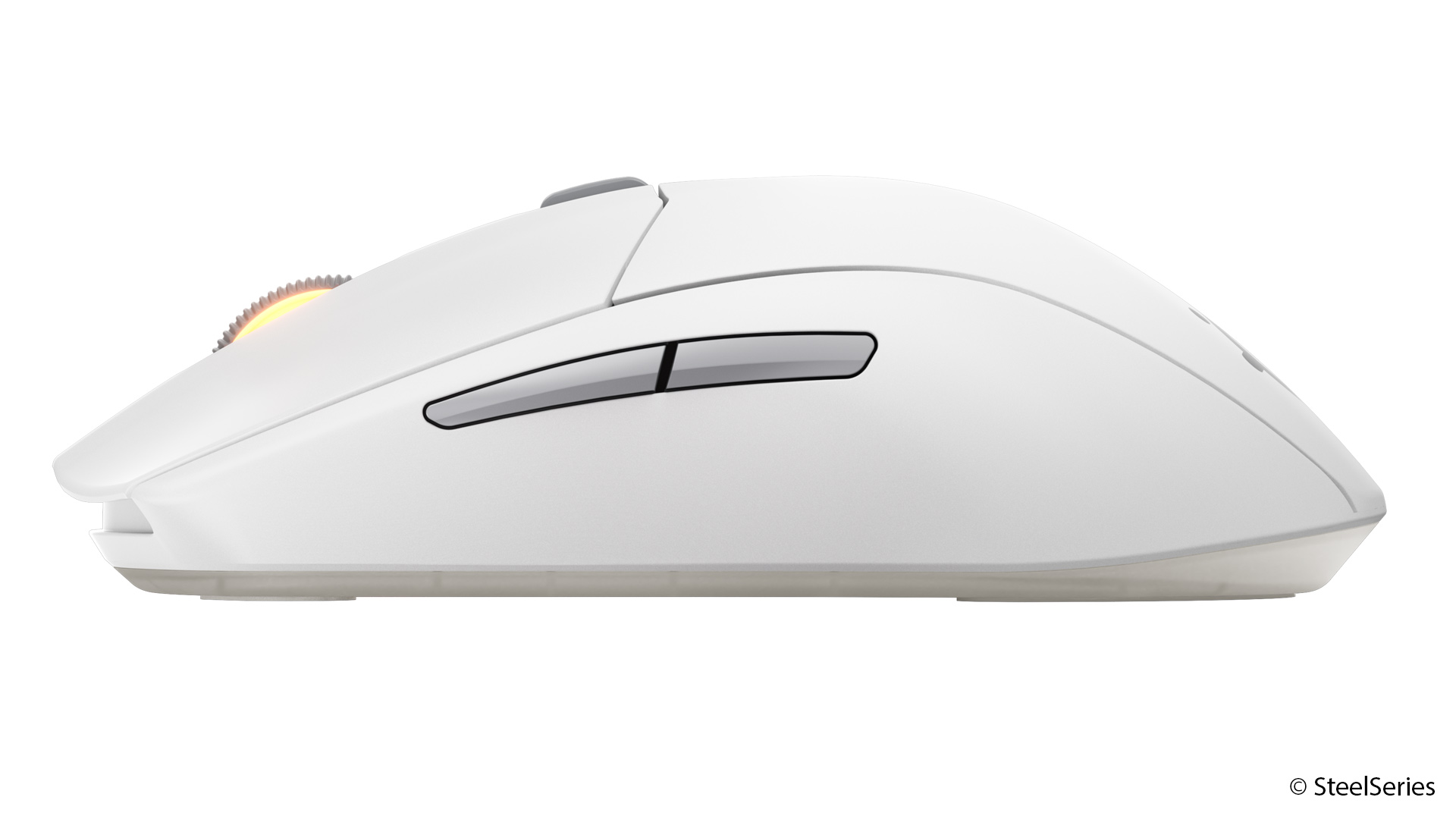 Die Rival 3 Wireless Gen 2 verfügt über insgesamt sechs Tasten: zwei Haupttasten, ein klickbares Scrollrad, eine separate DPI-Taste sowie zwei Daumentasten auf der linken Seite.