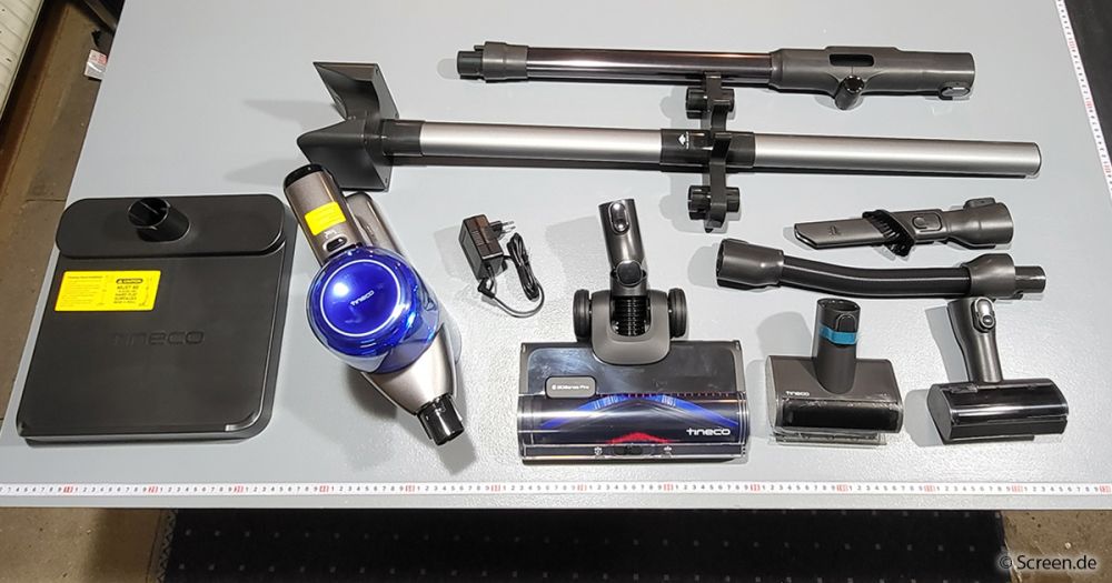 Für den Preis von 499 Euro erhält man neben dem eigentlichen Sauger nebst Akku und Faltrohr auch eine Ladestation, die als vertikaler Parkplatz fungiert. Zum Lieferumfang gehören ferner eine 2-in-1-Fugenbürste, ein flexibler Verlängerungsschlauch, eine Mini-Power-Bürste für Polster und ein Flusenkehrer zur schonenden Reinigung von Textilien.