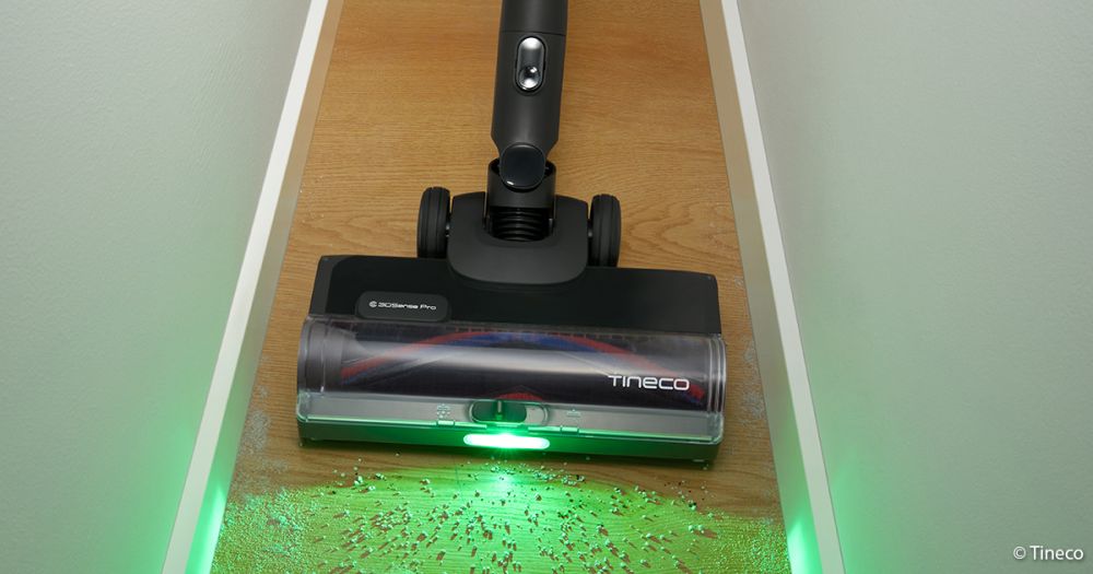 Besagte Sensorik firmiert als 3DSense Pro Reinigungssystem, welches mehrere technische Bausteine an der motorisierten Bodenbürste umfasst. Dazu gehört eine Stauberkennung mit automatischer Anpassung der Saugleistung (DustSense), ein 150-Grad-Weitwinkel-Scheinwerfer, der Staubpartikel sichtbar macht (LightSense), sowie eine Kantenerkennung, welche eine effektive Reinigung auch in Wandnähe ermöglicht (EdgeSense).