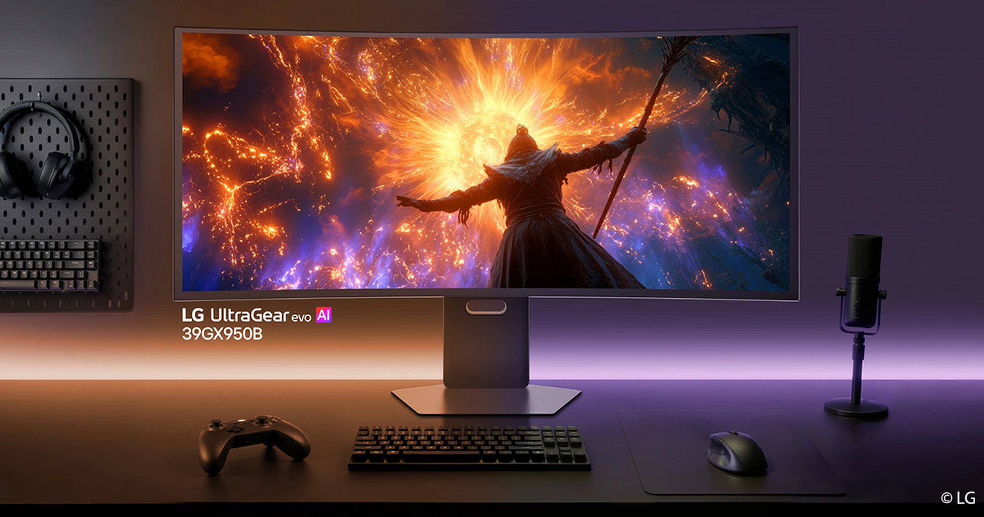 Das Modell 39GX950B nutzt ein 39 Zoll großes, gekrümmtes OLED-Panel mit Primary-RGB-Tandem-Technologie. Diese Bauweise ist auf höhere Helligkeit, präzisere Farbwiedergabe und eine verlängerte Lebensdauer ausgelegt. Das 21:9-Display mit 1500R-Krümmung erreicht eine Pixeldichte von 142 ppi und ist nach VESA DisplayHDR True Black 500 zertifiziert. Neben der KI-gestützten Bildoptimierung passt das System auch den Klang über AI Sound dynamisch an das jeweilige Spielgeschehen an. Eine Dual-Mode-Funktion erlaubt den Wechsel zwischen 5K2K-Auflösung bei 165 Hertz und einer Bildwiederholrate von bis zu 330 Hertz bei WFHD. Die Reaktionszeit liegt bei 0,03 Millisekunden.